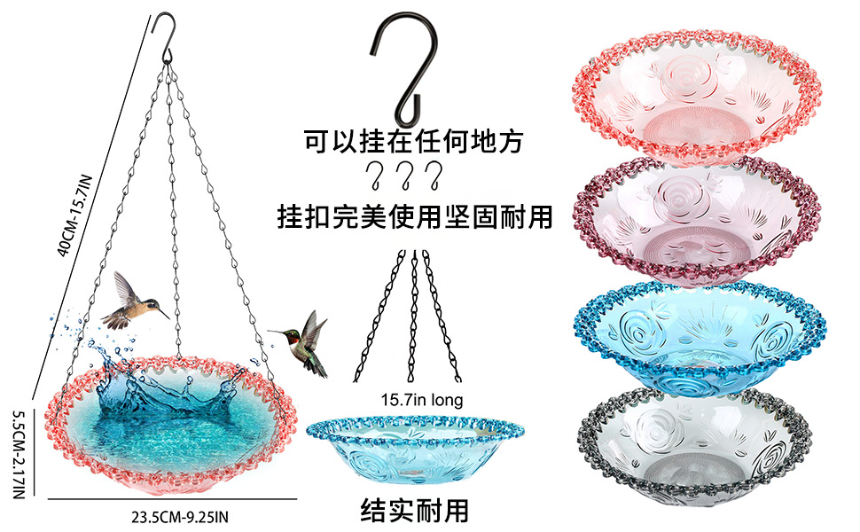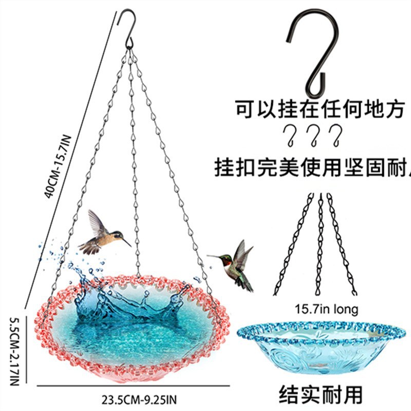 花园喂悬挂鸟跨境园庭庭院户外装饰爆器款现货Brogan澡盆鸟吊饰