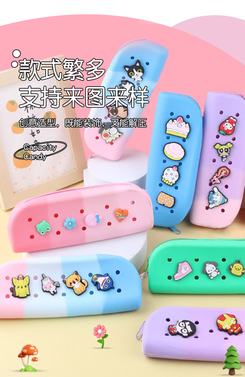 초등학교 학생을위한 연필 케이스 저학년 유치원 어린이 지퍼 문구 케이스 다기능 실리콘 방수 연필 케이스
