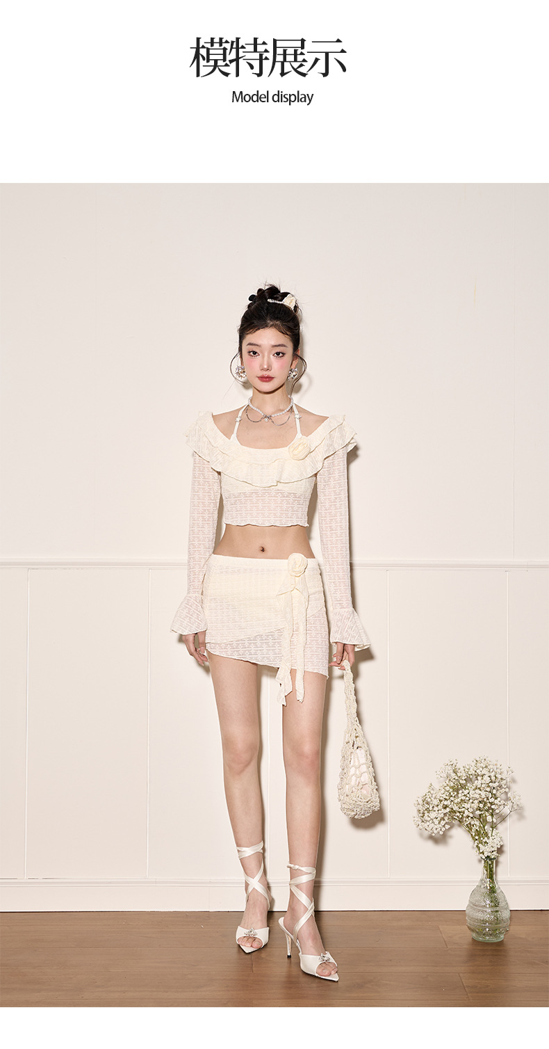 25 새로운 고가 비키니 4 피스 세트 슈퍼 요정 순수한 보수적 인 긴 소매 선 스크린 휴일 레이스 수영복 여성을 원합니다