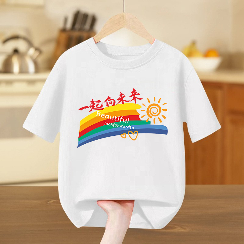 국경일 반소매 티셔츠 중국어린이면 반소매 초등학생 · 중등학교 학생 유치원활동 수업 옷 화이트 탑