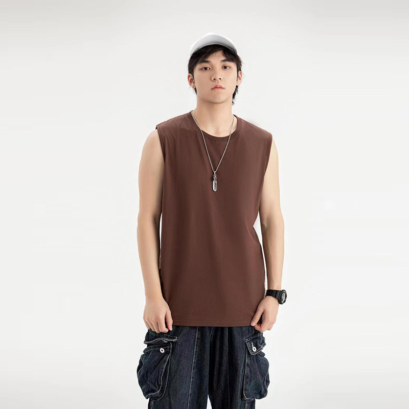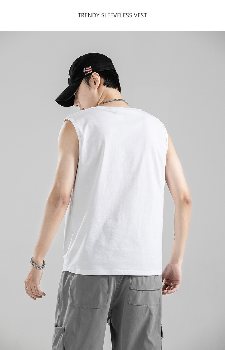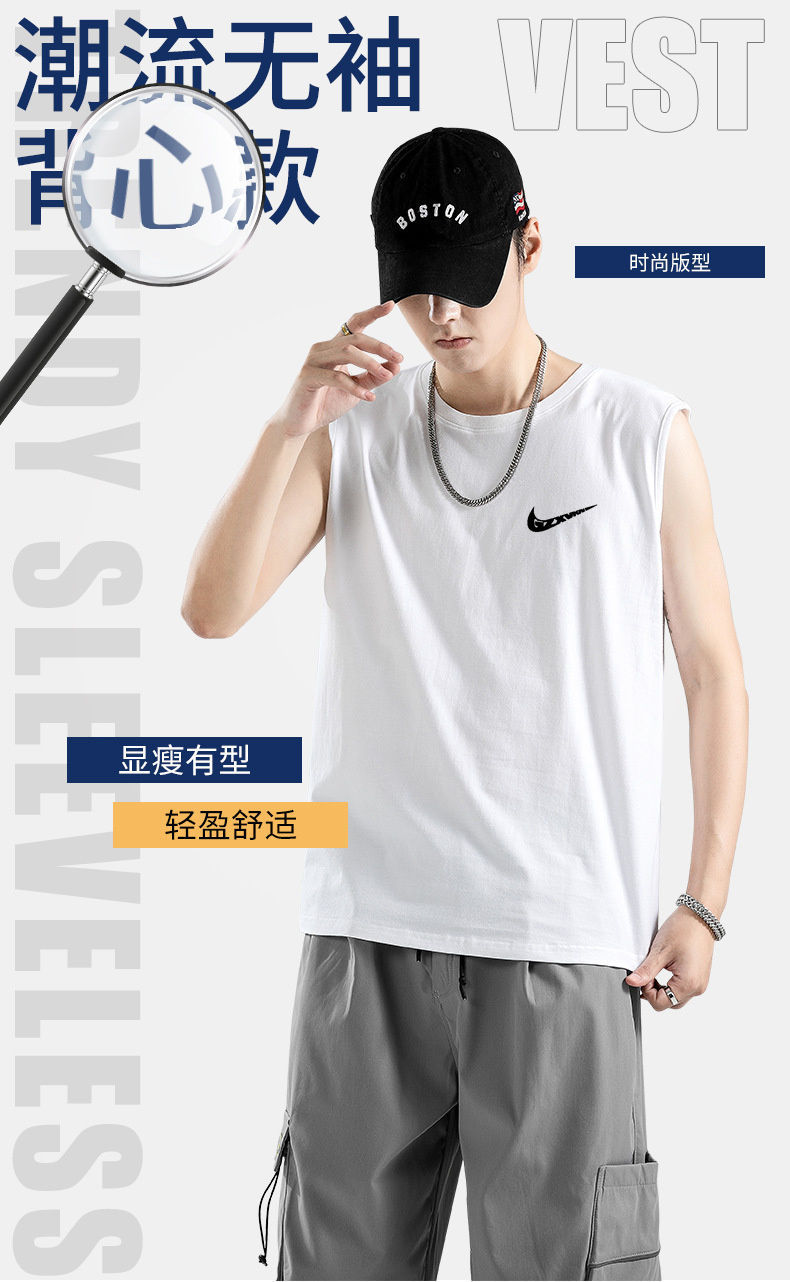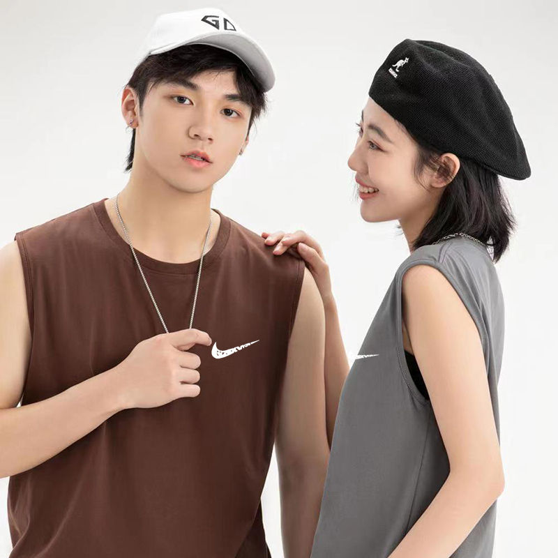 남자 퓨어 코튼 캐주얼 스포츠 조끼 남녀 민소매 반팔 티셔츠 농구 의류 학생 반소매 웨이스트 코트