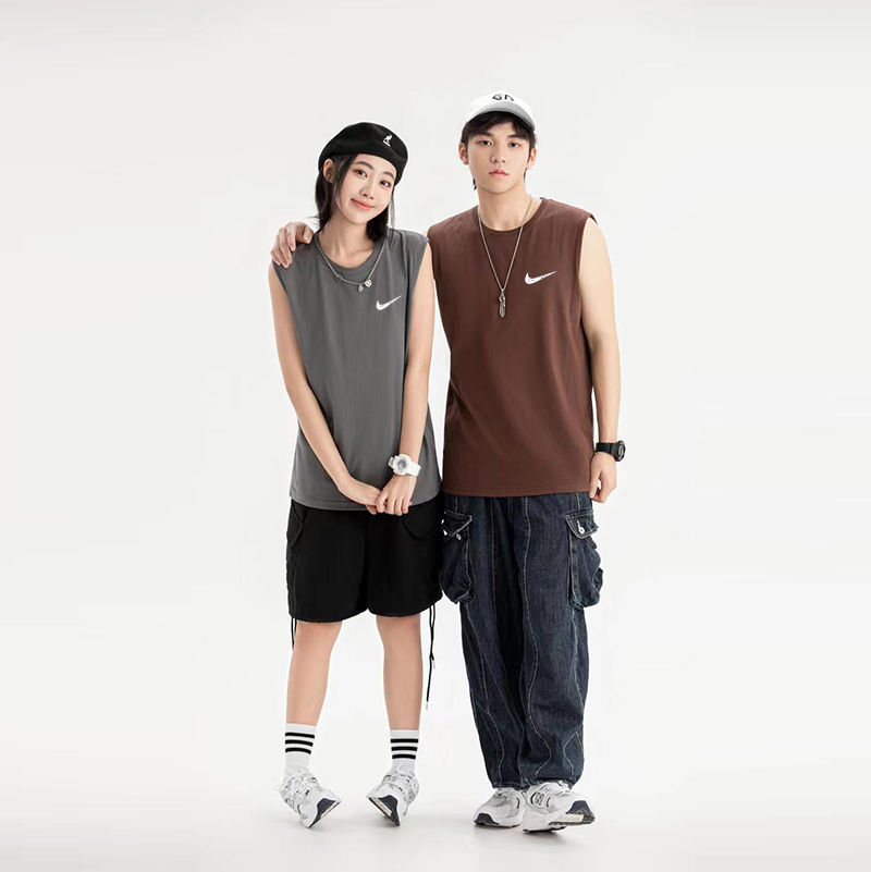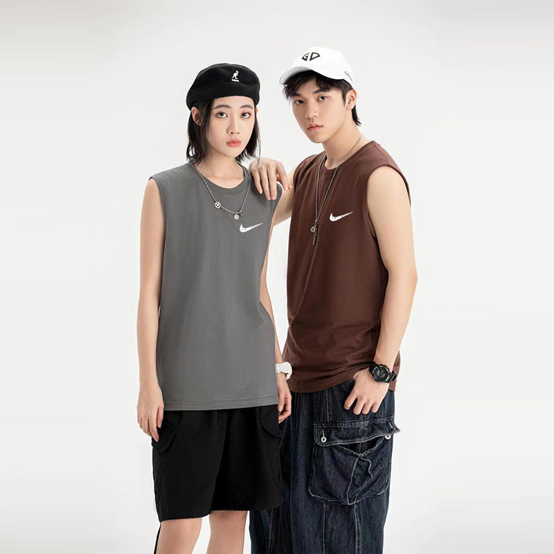 남자 퓨어 코튼 캐주얼 스포츠 조끼 남녀 민소매 반팔 티셔츠 농구 의류 학생 반소매 웨이스트 코트스토어 가기