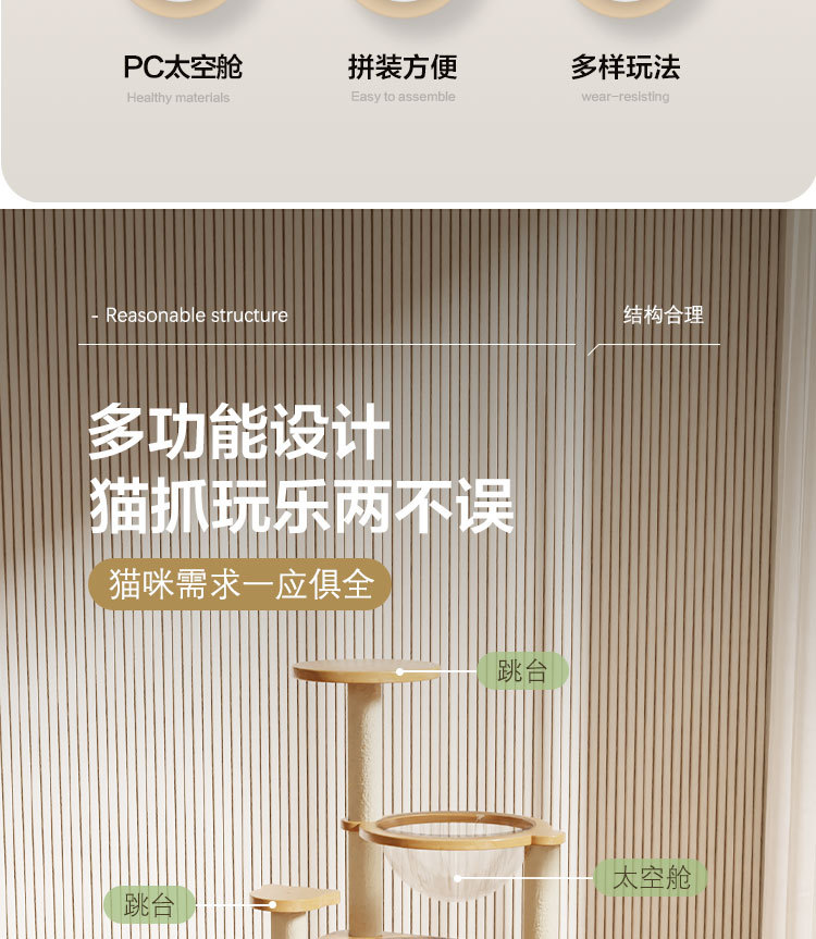 고양이 클라이밍 프레임, 고양이 둥지, 고양이 트리, 일체형 고양이 스크래치 보드, 고양이 선반, 스카이 컬럼, 고양이 점프 플랫폼, 고양이 용품, 나무 구멍 등반