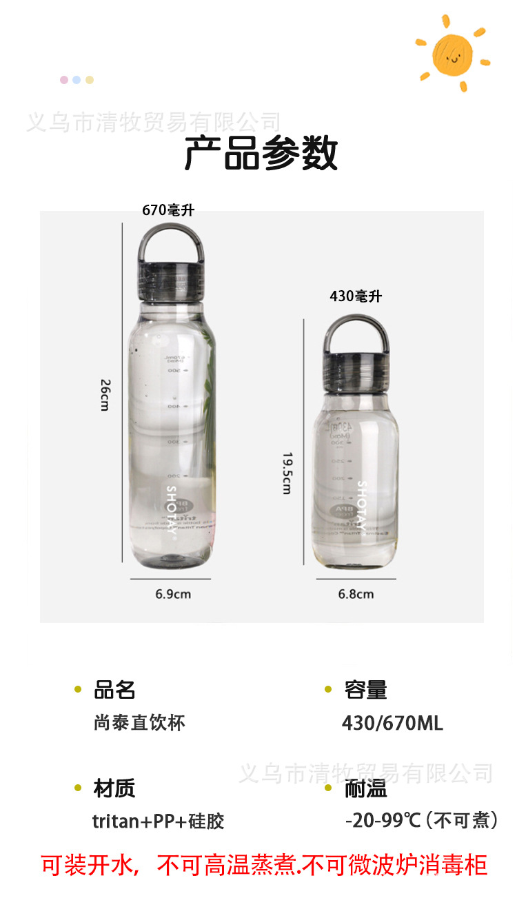 학생 휴대용 남성 및 여성 직접 마시는 고 부가가치 여름 핸들 컵에 컵을 동반 한 Shangtai Tritan 플라스틱 컵