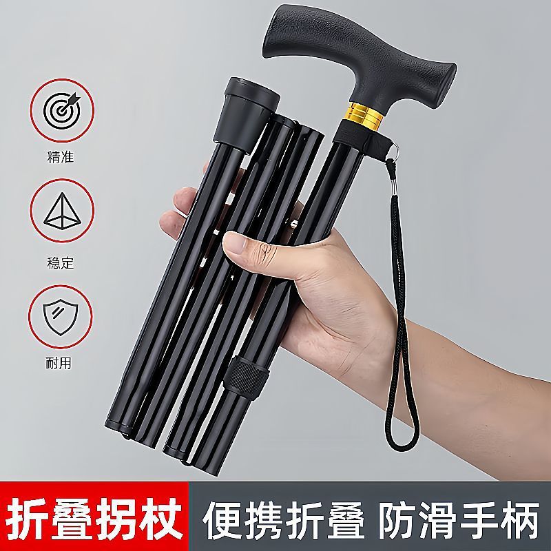 알루미늄 합금 트레킹 스틱 접이식 텔레스코픽 초경량 4 섹션 스틱 하이킹 야외 지팡이 휴대용 노인 지팡이 진드기 제거 패드스토어 가기