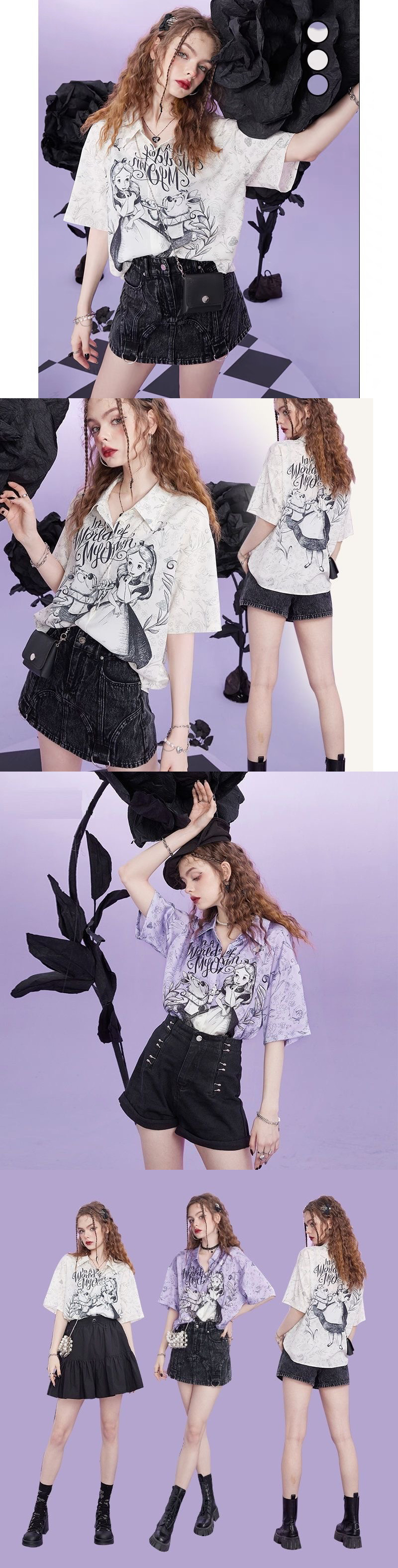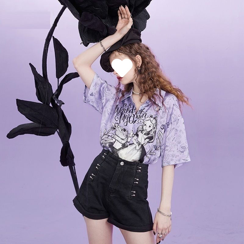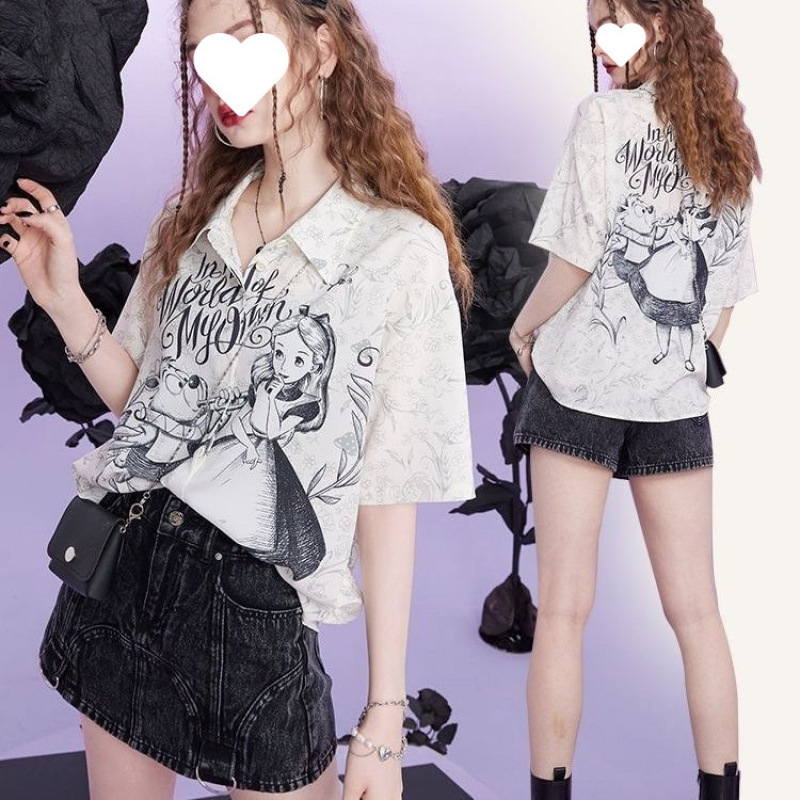 여성을위한 요정 프린트 반팔 셔츠 2025 여름 느슨한 새틴 쉬폰 셔츠 달콤한 기질 셔츠 탑 유행스토어 가기