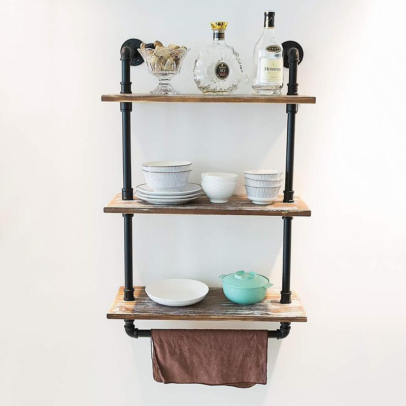 미국의 창조적 인 산업 스타일의 선반 거실 주방 홈 디스플레이 랙 복고풍 수도관 철 단단한 나무 벽걸이