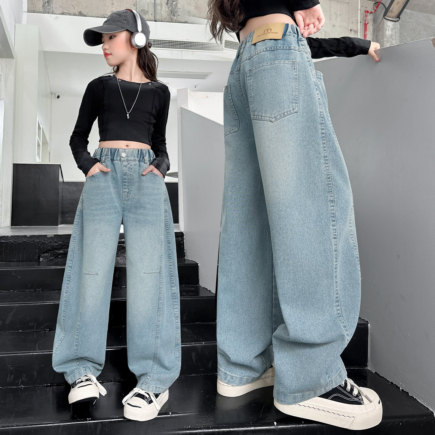 여아 바지 봄 가을 2026 신상 아동 겨울 인기 플러스벨벳 데님 큰아이 루즈핏 칼날형 스트레이트 팬츠