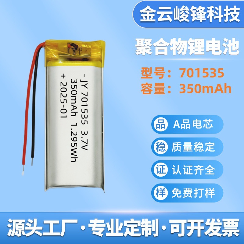 701535聚合物锂电池320mAh3.7V智能音响眼部按摩器筋膜枪充电电芯