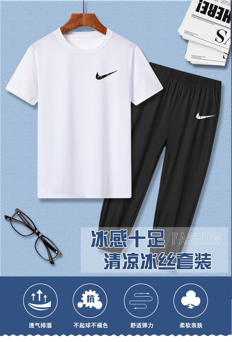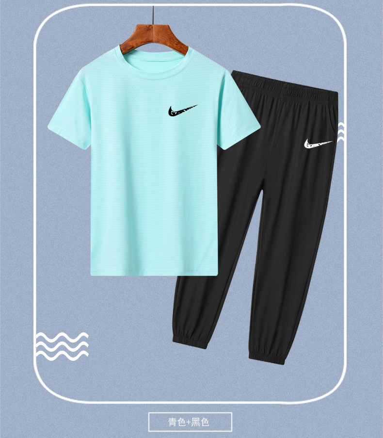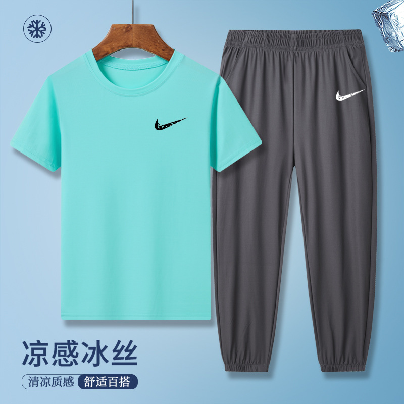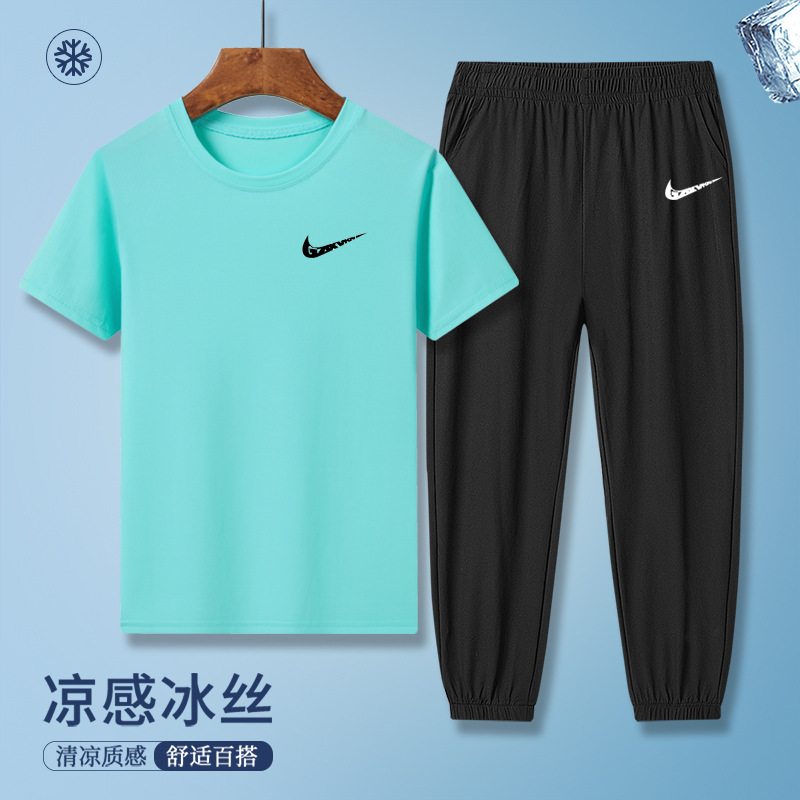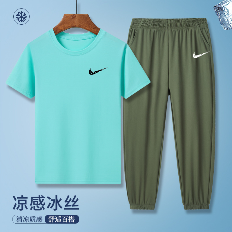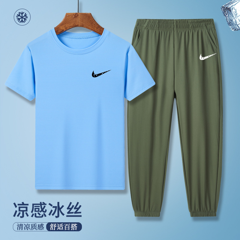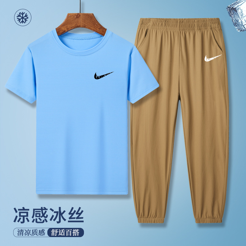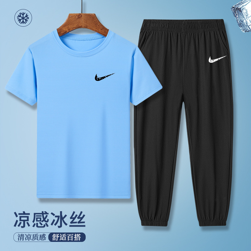 소년의 여름 빠른 건조 세트 어린이 아이스 실크 반팔 바지 운동복 느슨한 통기성 어린이 투피스 얇은 세트스토어 가기