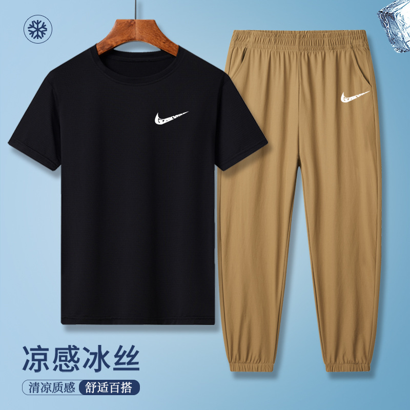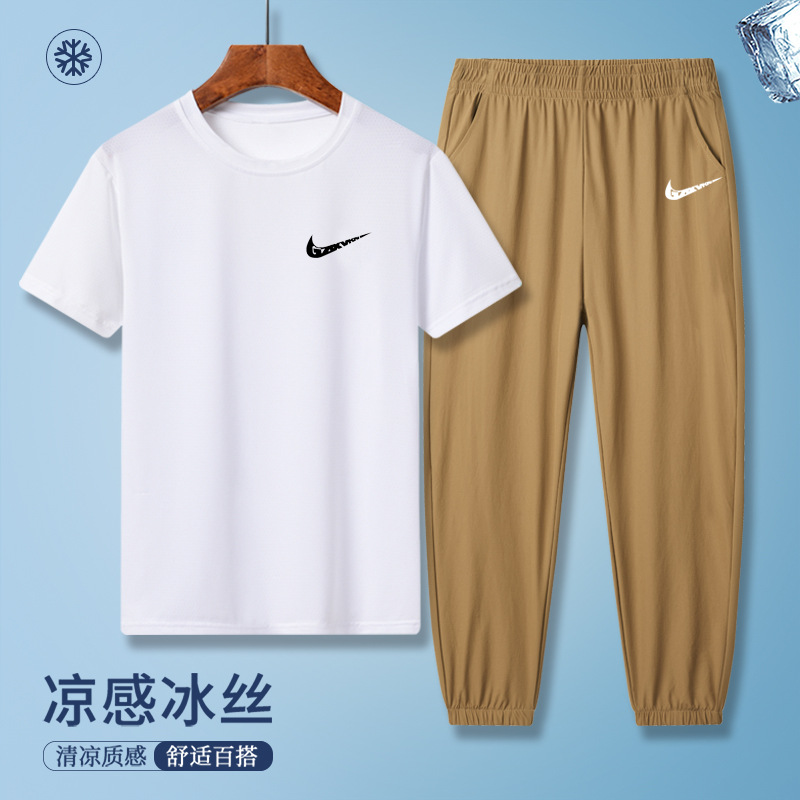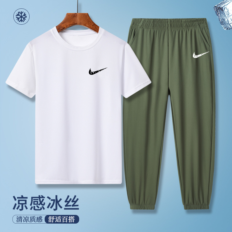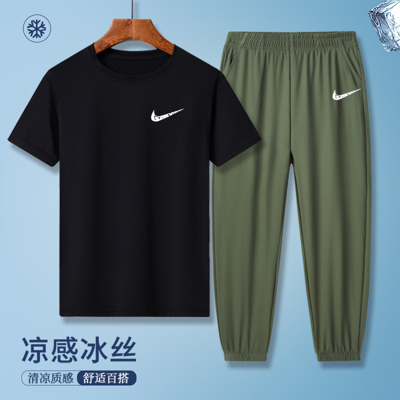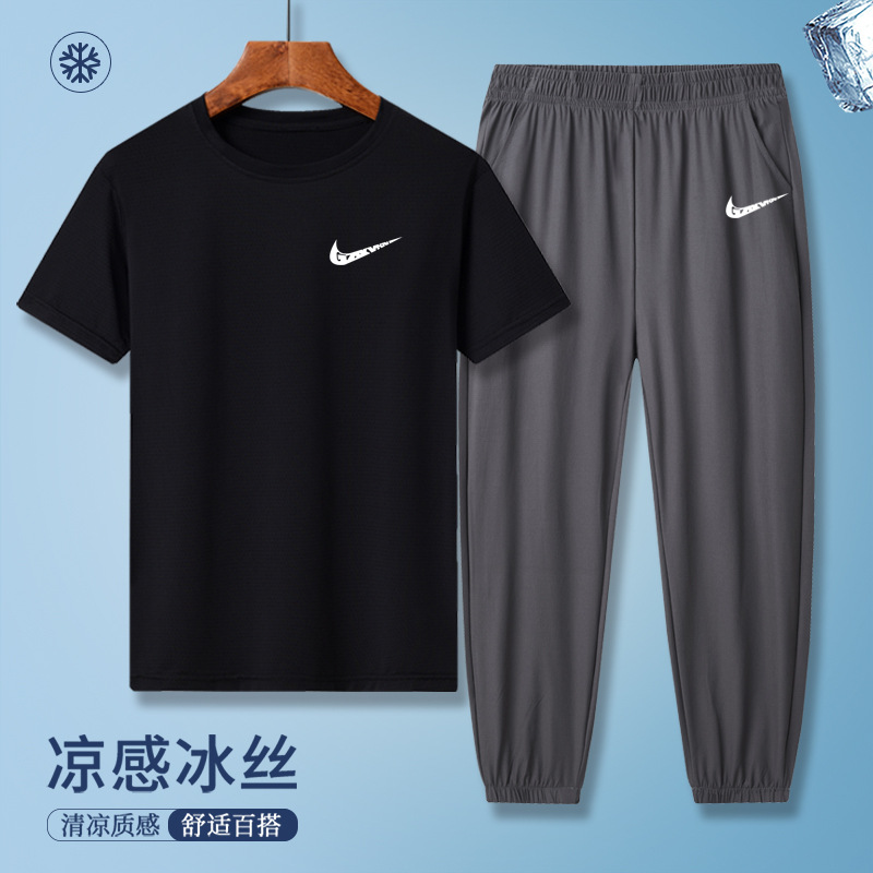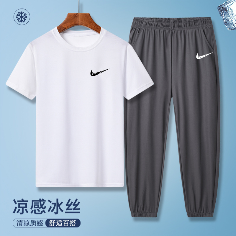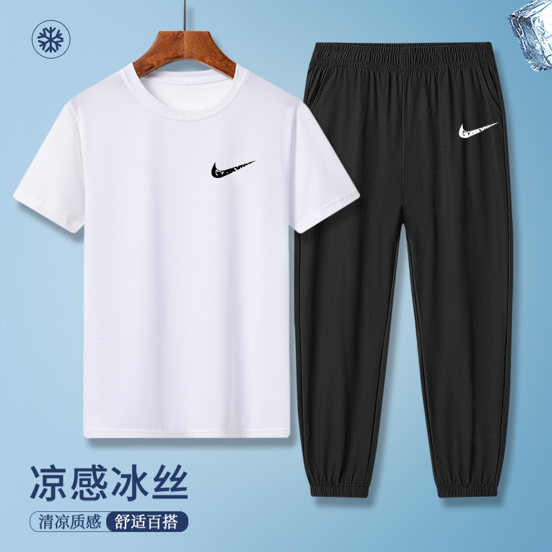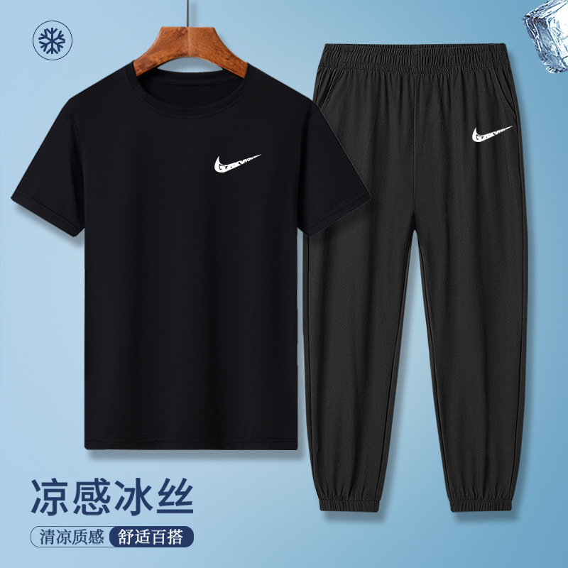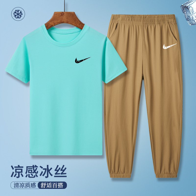 소년의 여름 빠른 건조 세트 어린이 아이스 실크 반팔 바지 운동복 느슨한 통기성 어린이 투피스 얇은 세트스토어 가기
