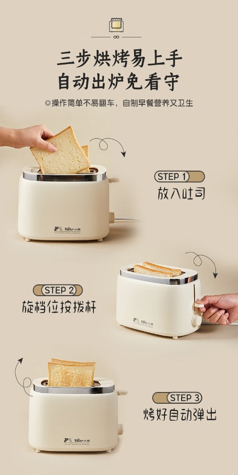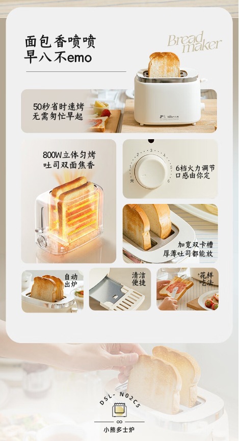 곰 빵 기계 완전 자동 토스트 기계 가정용 토스트 기계 아침 식사 기계 토스터 DSL-F02E1스토어 가기