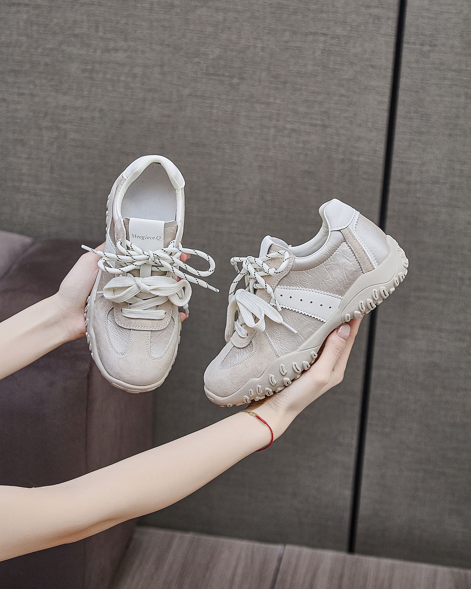 정품 가죽 2025 봄과 여름 새로운 7cm 높이 증가 모든 경기 캐주얼 패션 운동화 여성 라운드 헤드 레이스 업 독일 훈련 신발