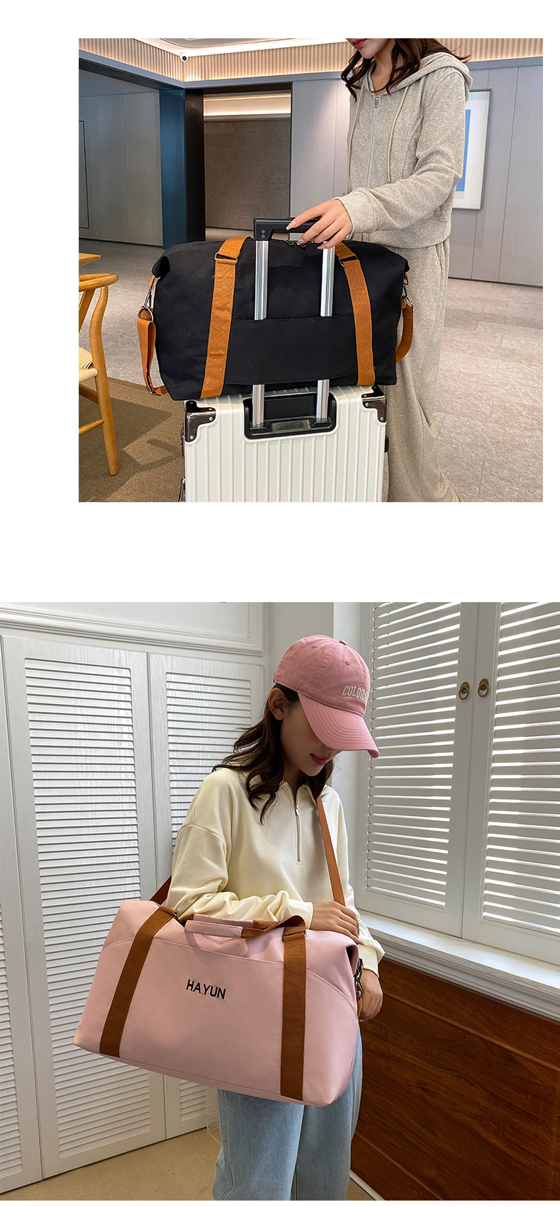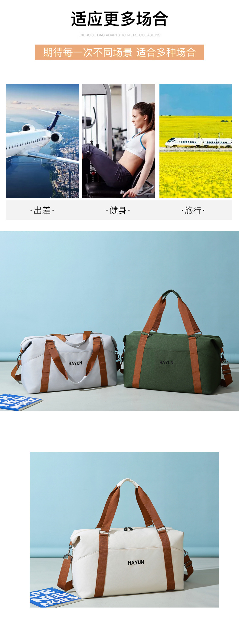 단거리 출장을 위한 새로운 스타일의 휴대용 수하물 가방, 여성용 경량 대용량 스포츠 트레이닝 피트니스 가방스토어 가기