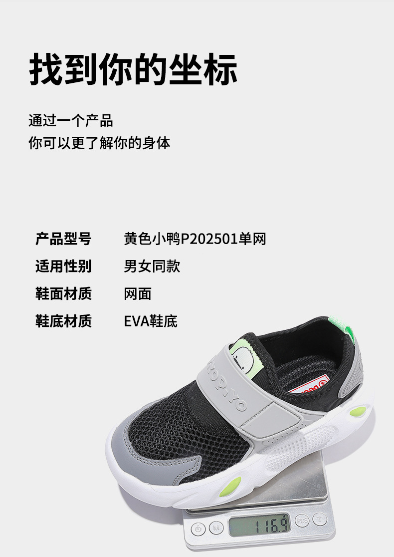 소년 소녀를위한 노란색 오리 어린이 여름 싱글 네트 2025 운동화 새로운 스타일 할로우 그물 2501스토어 가기