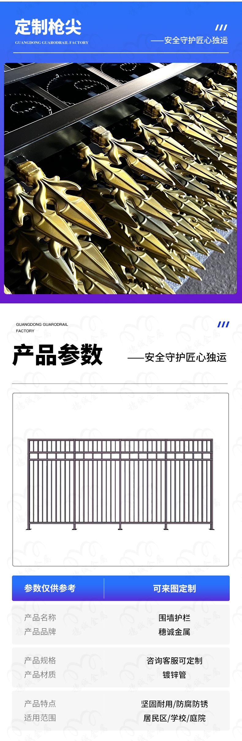 학교 유치원 주변 단철 난간 맞춤형 야외 안전 등반 방지 격리 울타리 아연 강철 벽 울타리