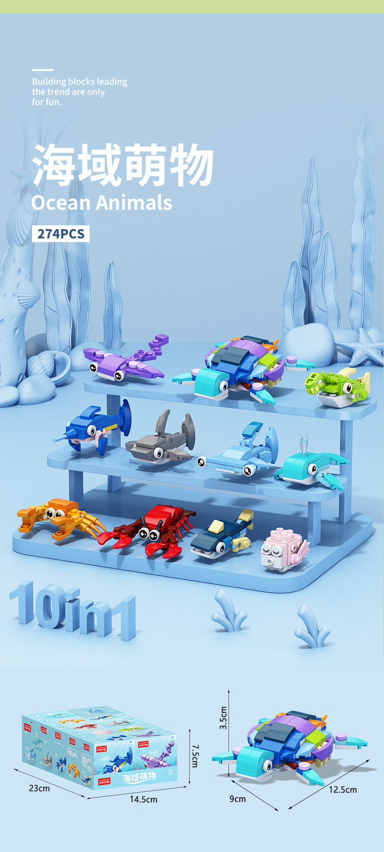 • 10개의 작은 상자 [바다의 귀여운 동물들] 11가지 모양이 하나로 통합되어 있습니다.
