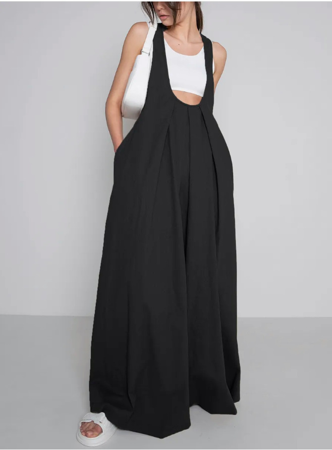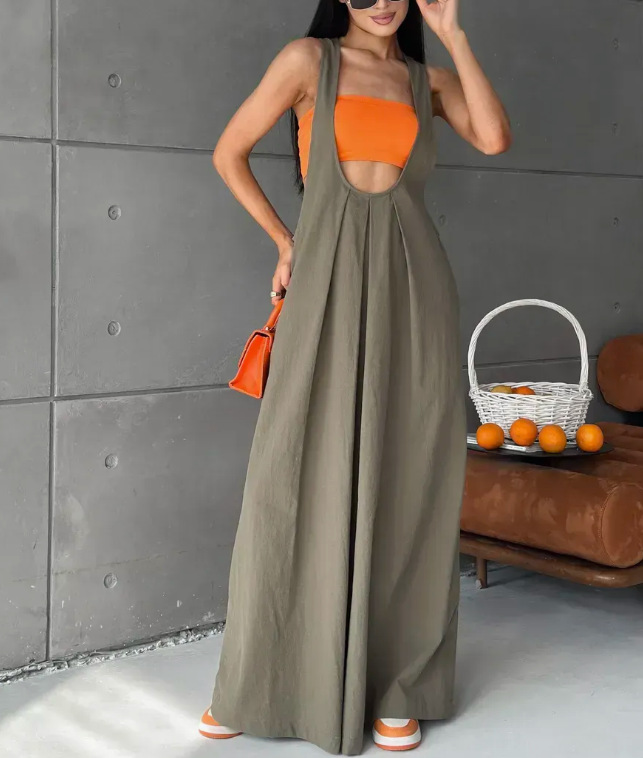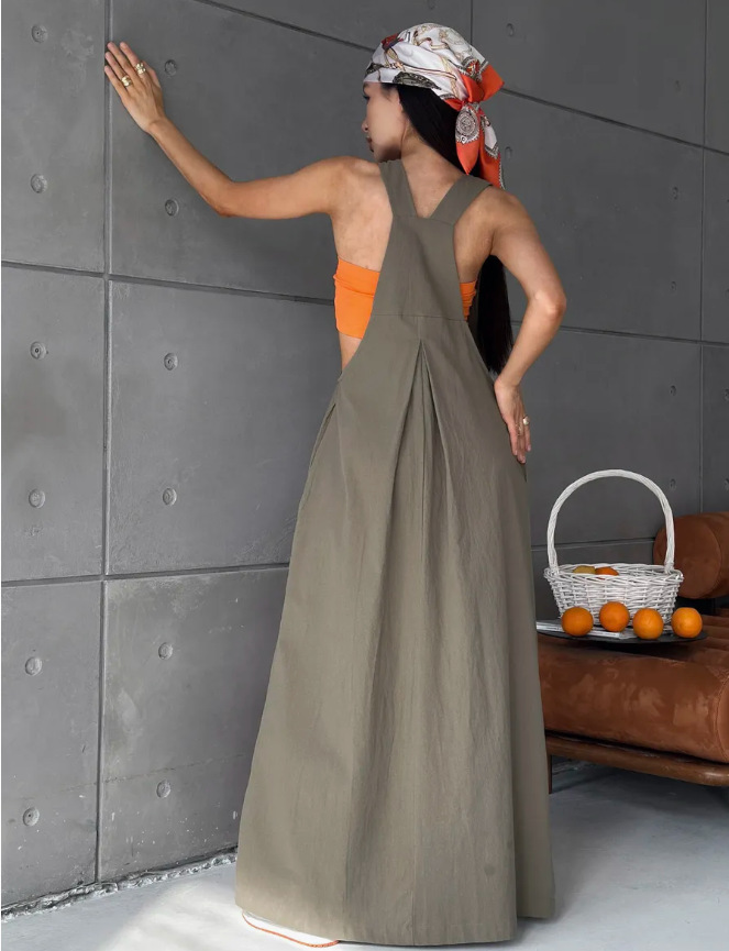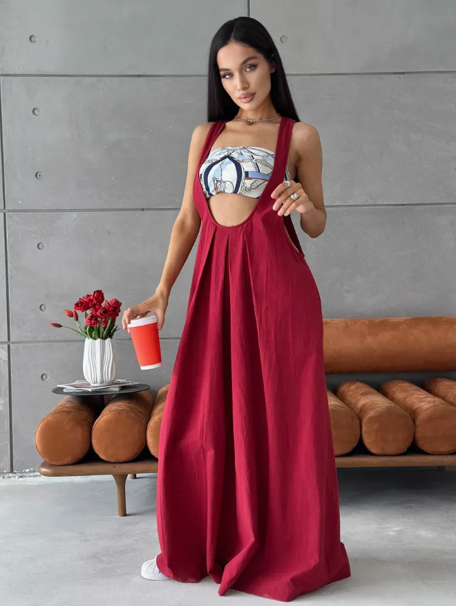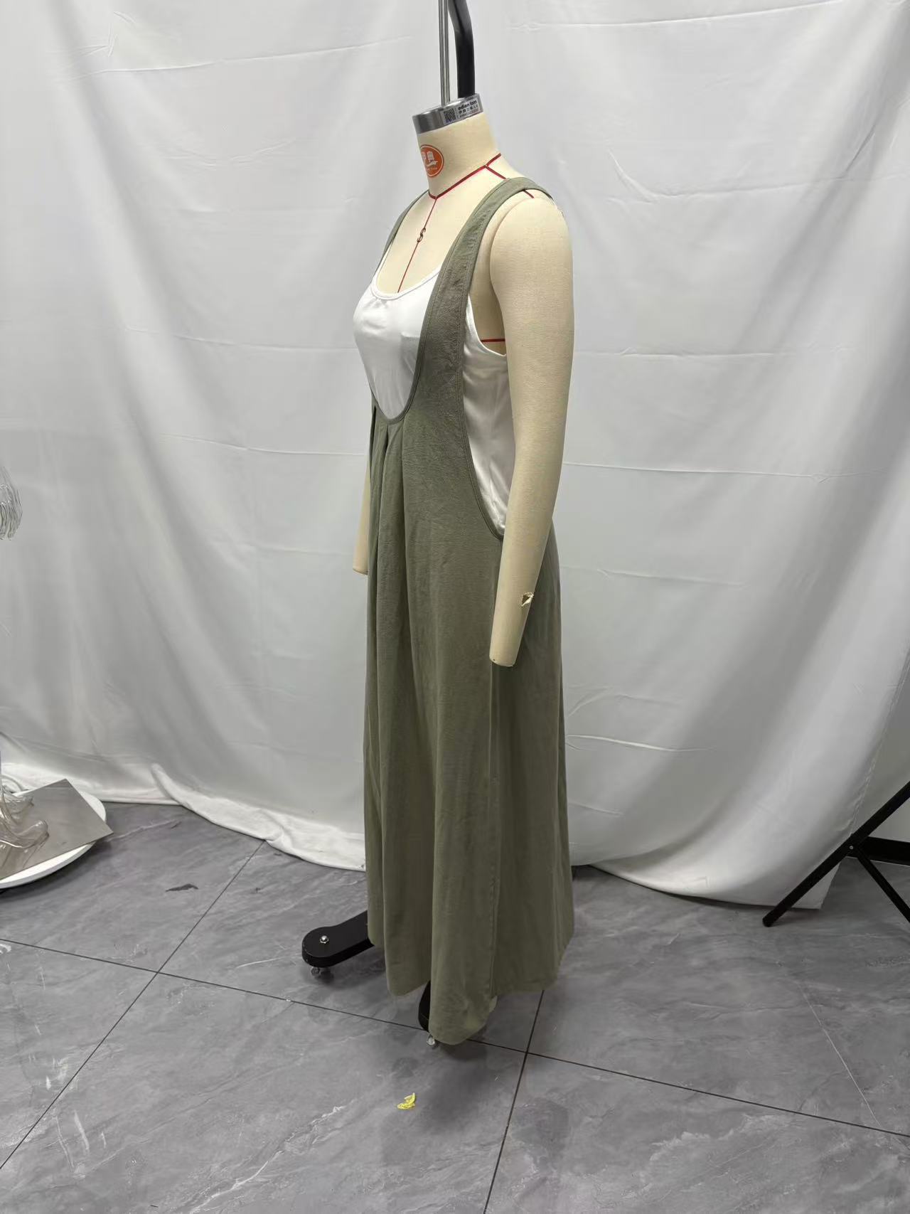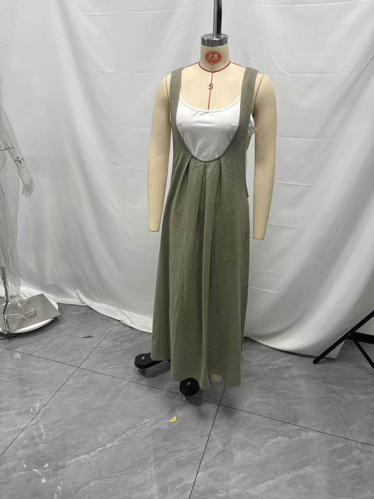 유럽과 미국의 독립 스테이션 보헤미안 스타일 봄과 가을 U 자형 칼라 조끼 드레스 느슨한 허리 공주 드레스 긴 드레스