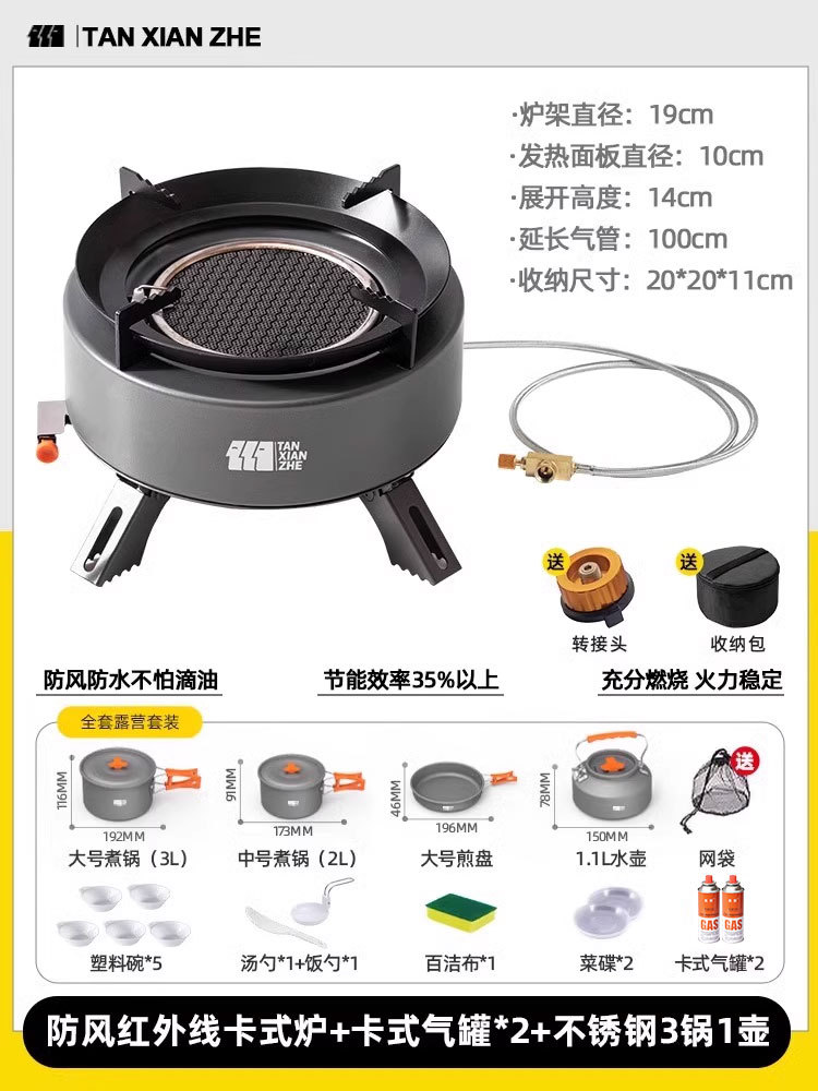 카세트 스토브, 야외 차 스토브, 캠핑 및 피크닉 장비, 가스 스토브 풀 세트, 휴대용 스토브, 분할형 Yutian스토어 가기