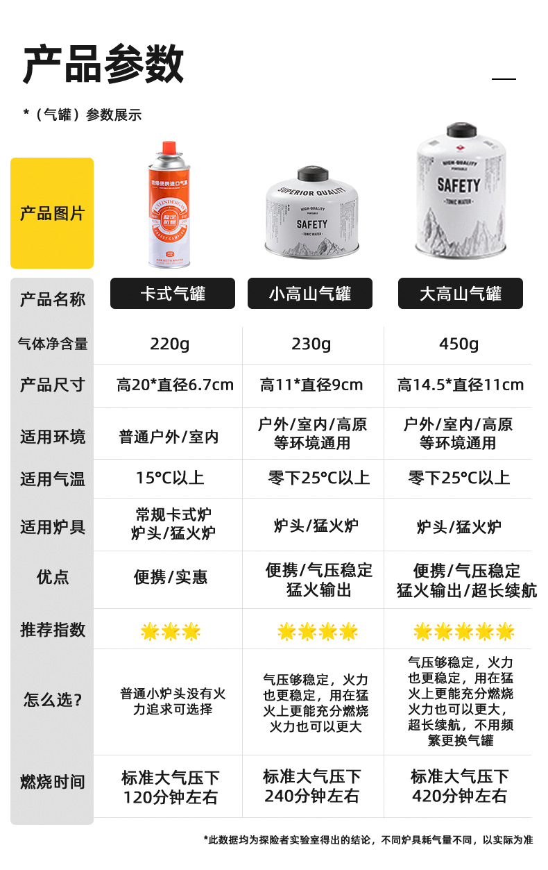 • 다음은 450g 초장수명 알파인 가스탱크로 약 3~4시간 정도 연소가 가능하며 고원에서도 사용이 가능합니다.
