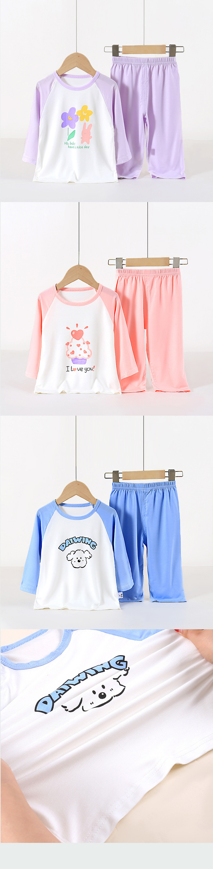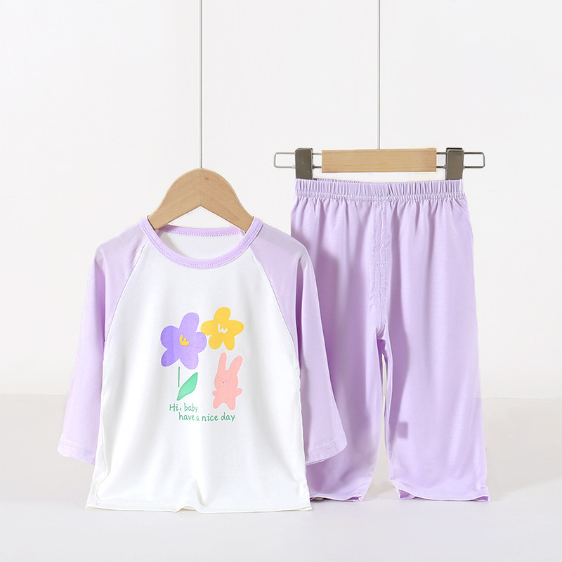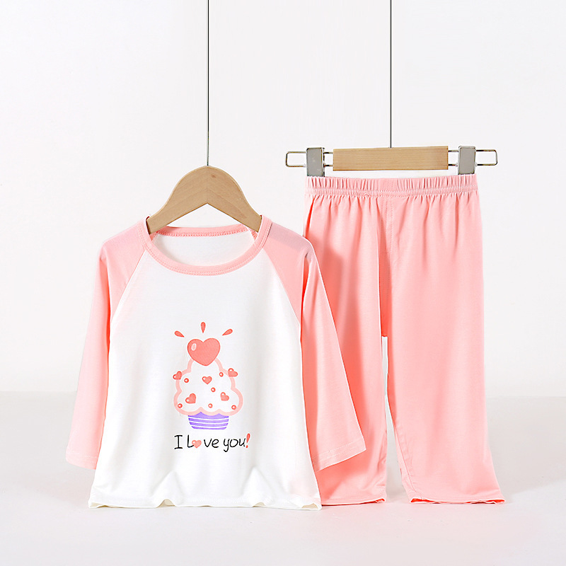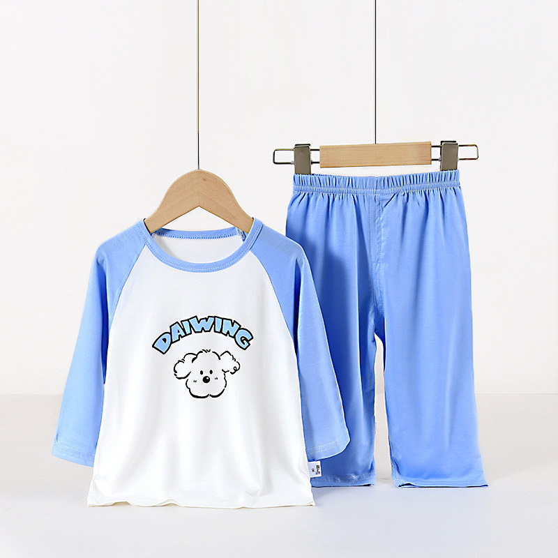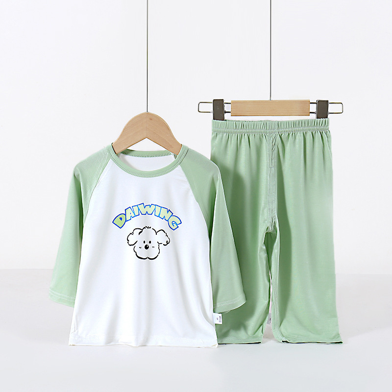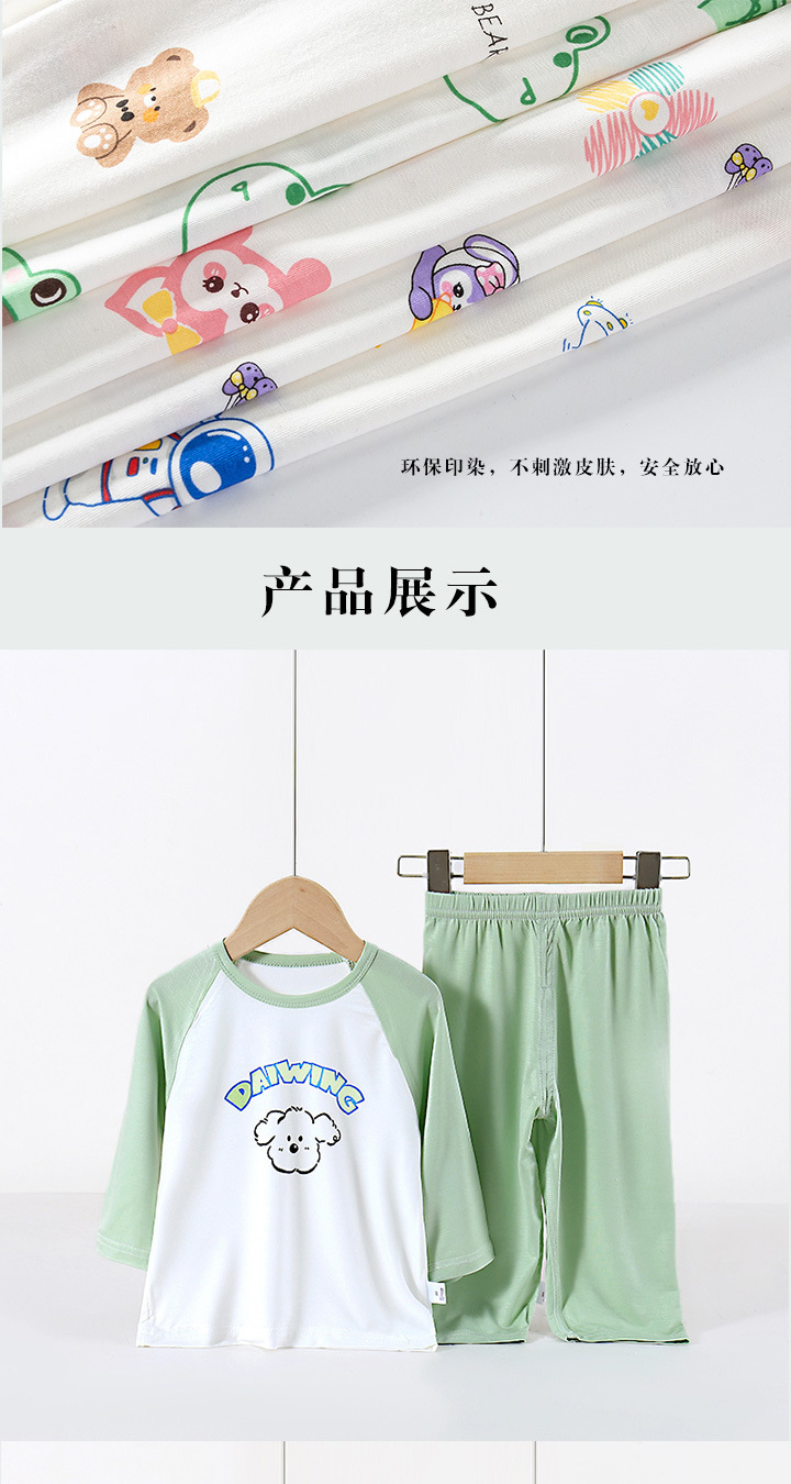 아동용 잠옷 세트, 에코 실크 가정복, 남아 및 여아용 에어컨 의류, 풀오버, 만화 9부 스타일스토어 가기