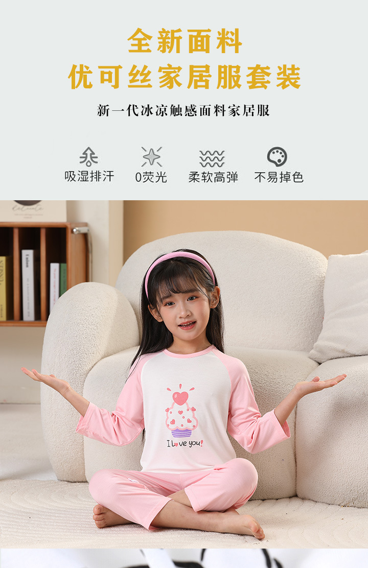 아동용 잠옷 세트, 에코 실크 가정복, 남아 및 여아용 에어컨 의류, 풀오버, 만화 9부 스타일