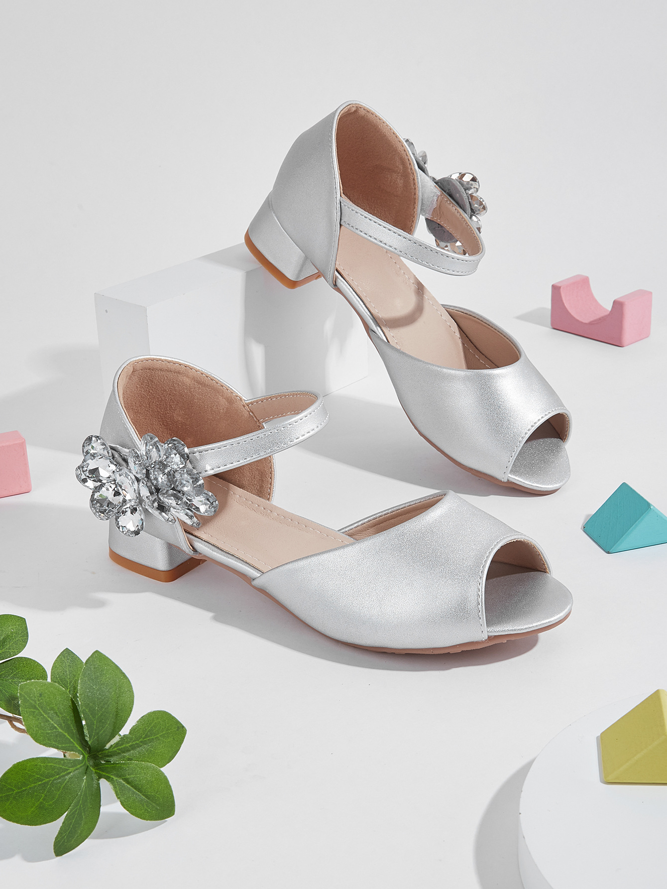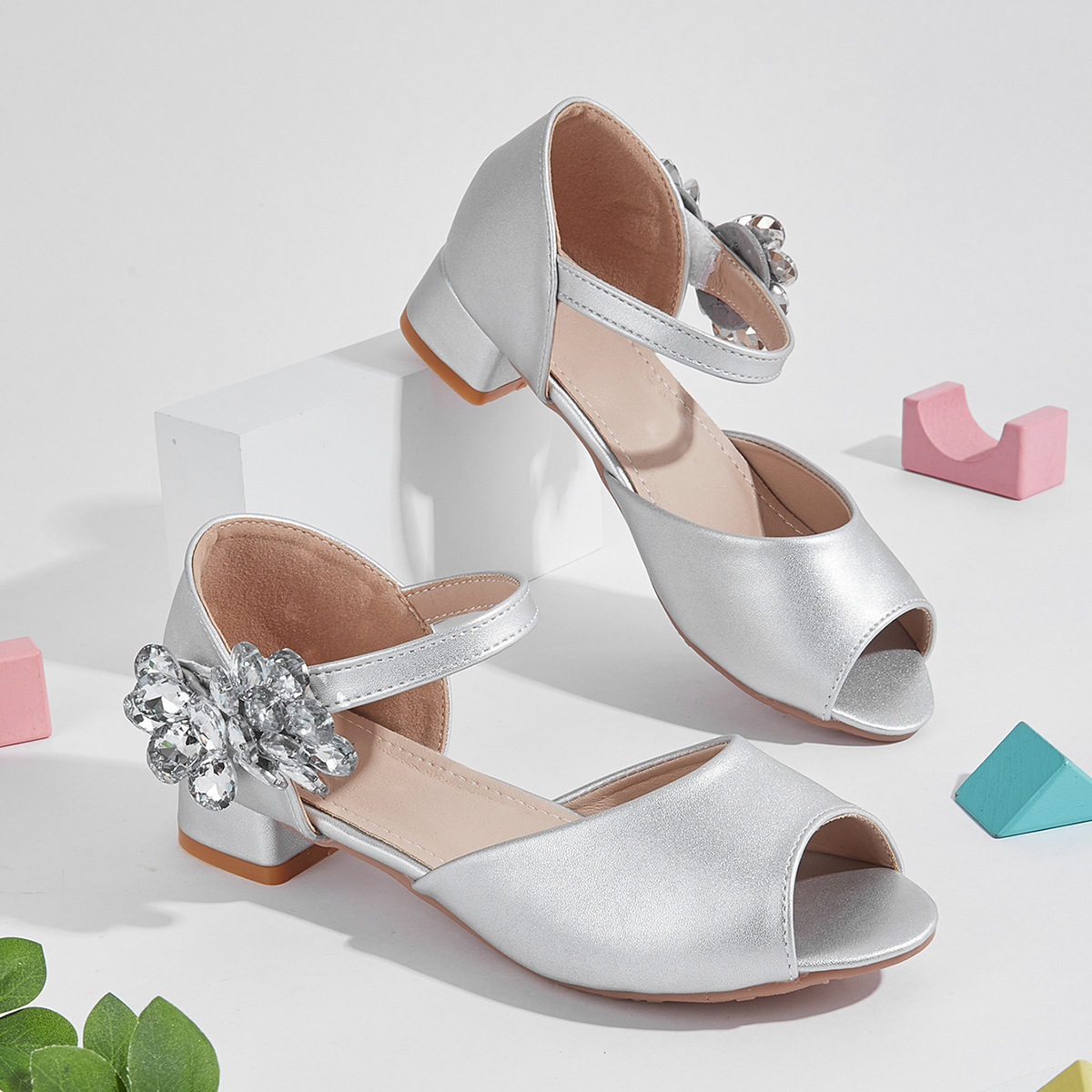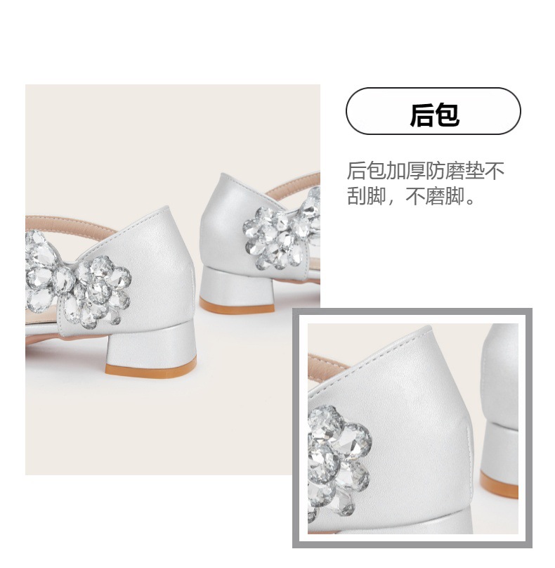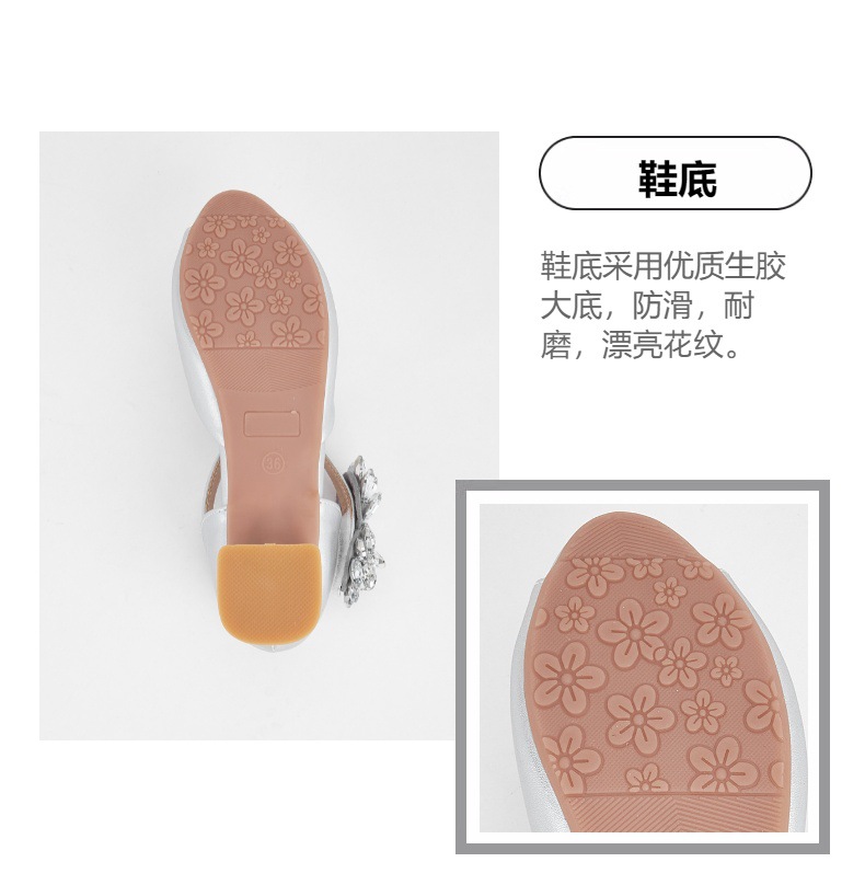 2025 새로운 모조 다이아몬드 나비 하이힐 두꺼운 뒤꿈치 미끄럼 방지 속이 빈 물고기 입 편안한 실버 우아한 패션 올 매치스토어 가기