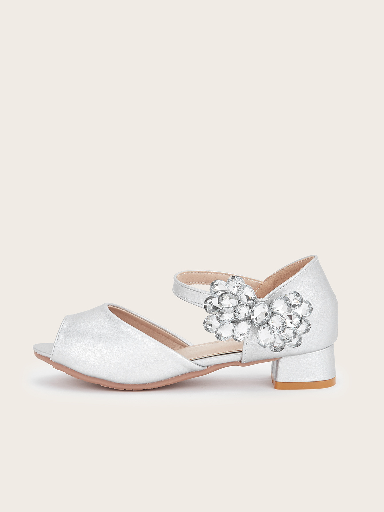 2025 새로운 모조 다이아몬드 나비 하이힐 두꺼운 뒤꿈치 미끄럼 방지 속이 빈 물고기 입 편안한 실버 우아한 패션 올 매치