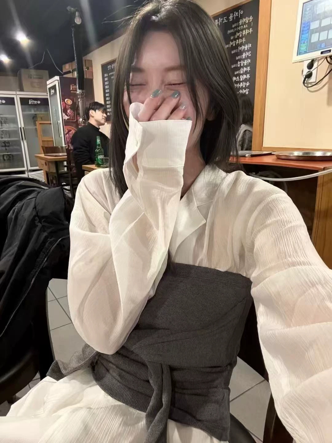 衬衫选用微透面料,轻薄柔软,