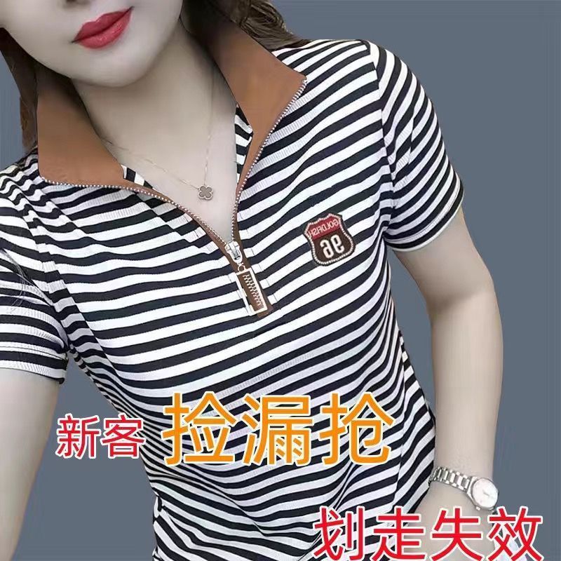 클리어런스~ 대외 무역 여름 여성 티셔츠 반팔 패셔너블한 스타일 트렌디한 엄마 폴로 탑 기질과 연령 감소스토어 가기