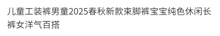 아동용 작업복 소년 2025 봄, 가을 새로운 스타일 레깅스 아기 단색 캐주얼 바지 여성 패션 다용도스토어 가기