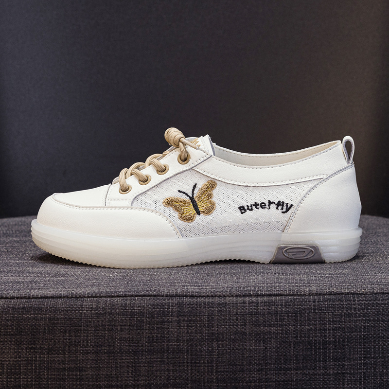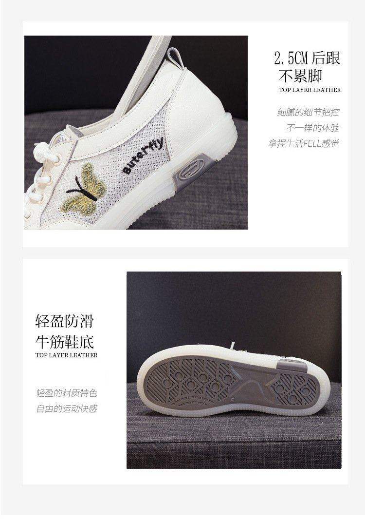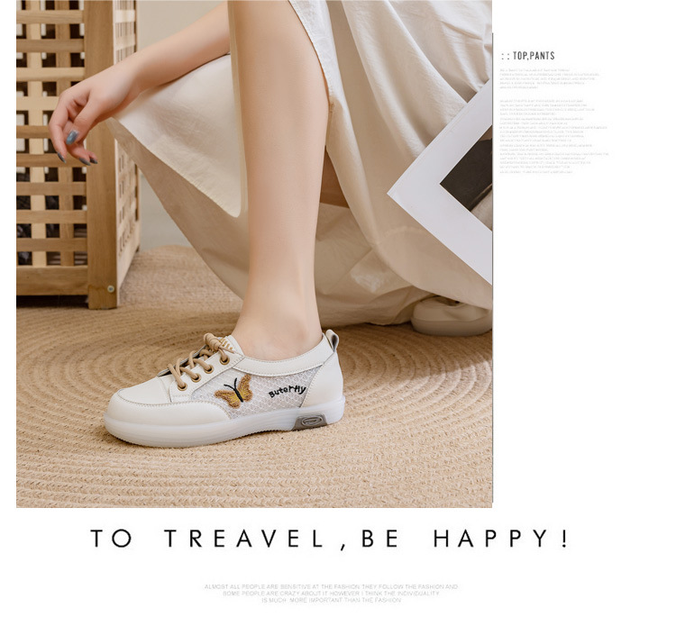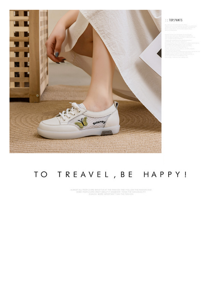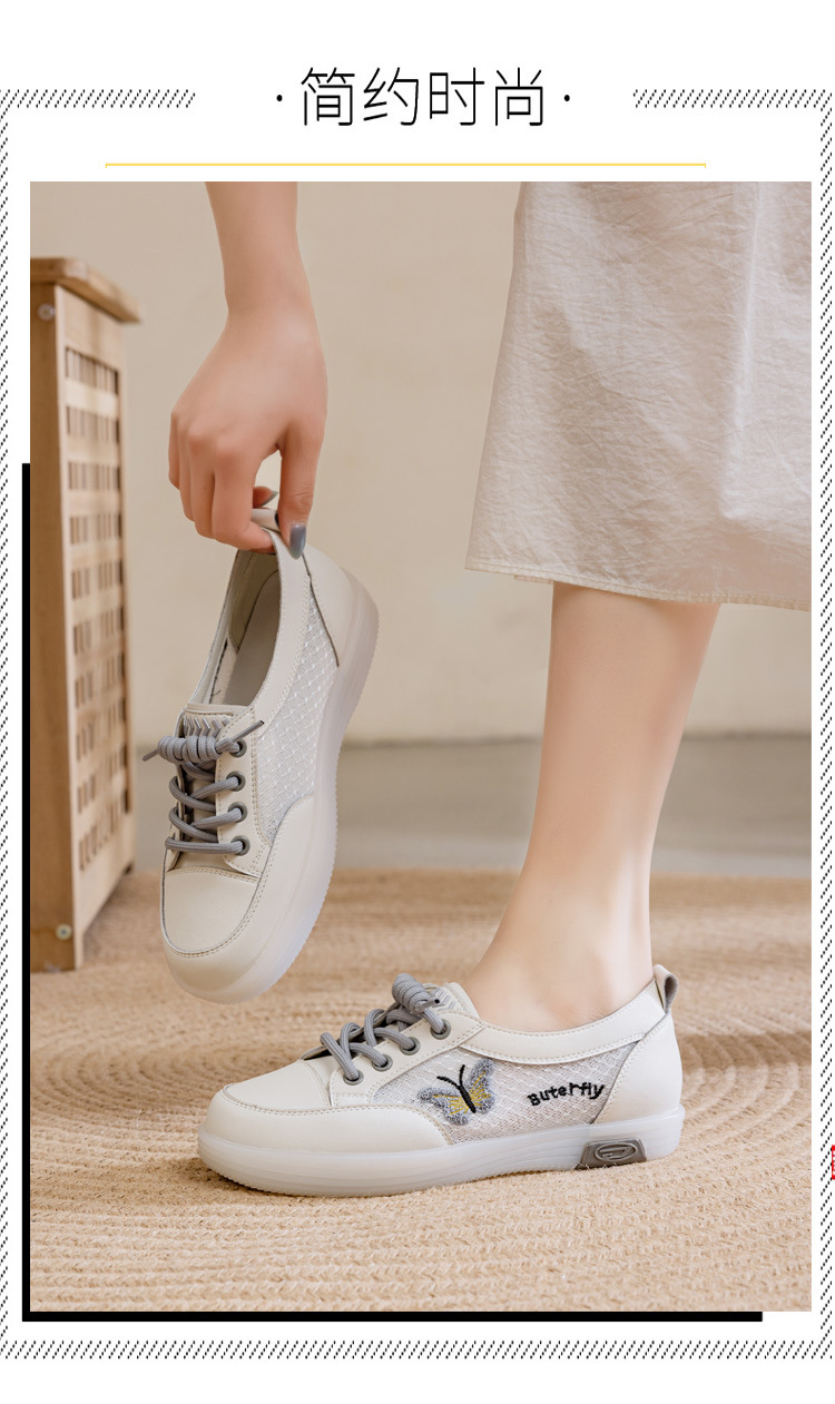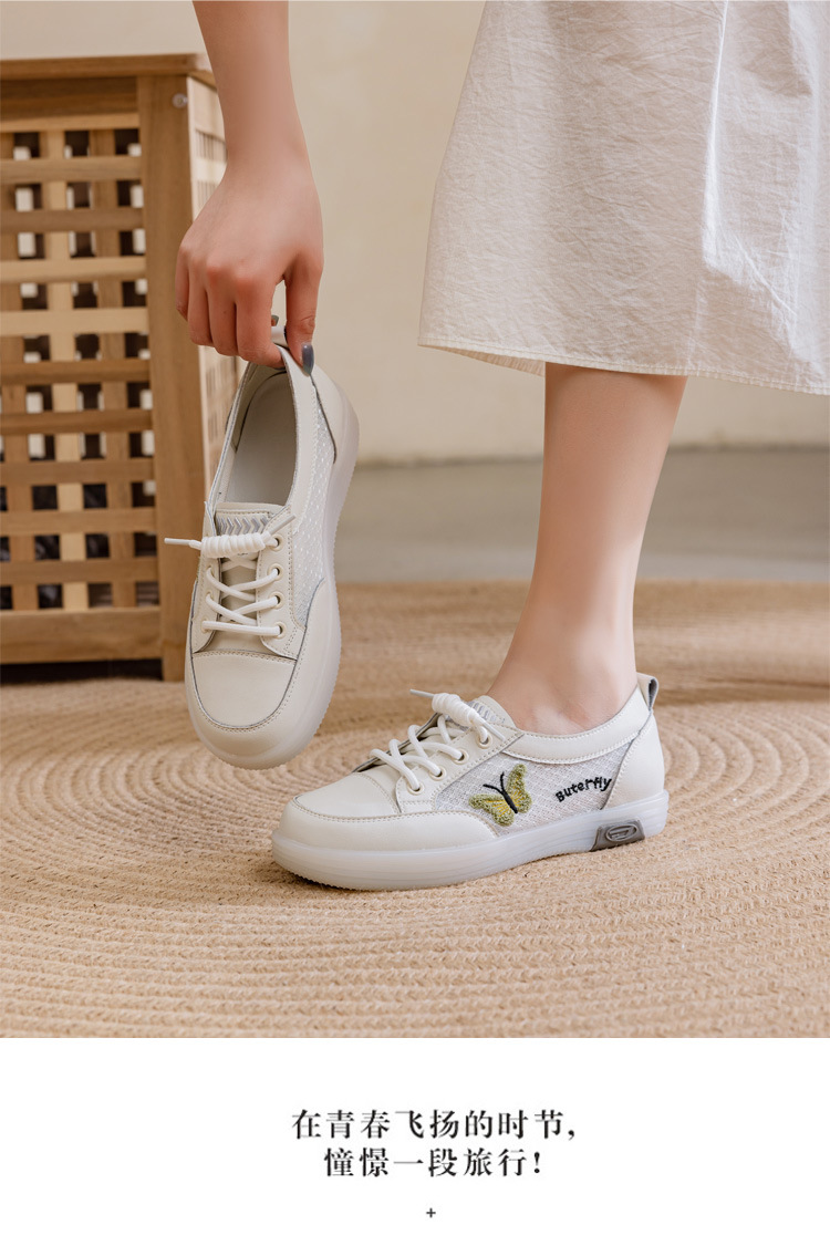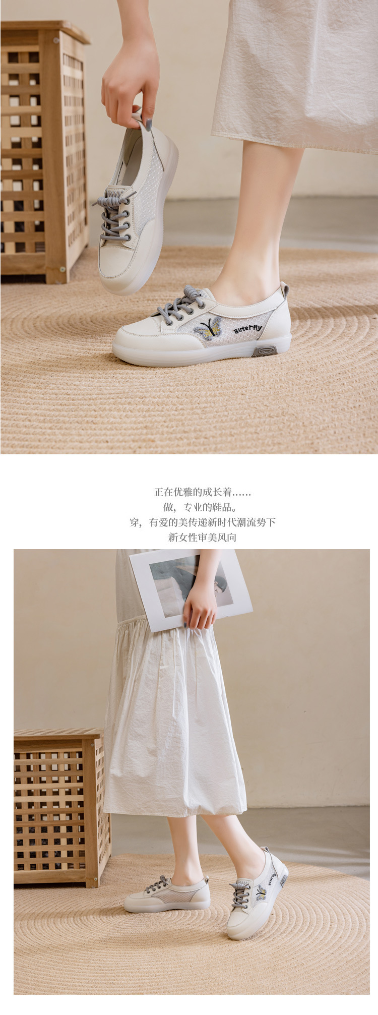 정품 가죽 플랫 화이트 신발 여성의 2025 년 봄과 여름 새로운 도착 나비 캐주얼 올 매치 소프트 솔 메쉬 신발 플러스 사이즈 여성 신발