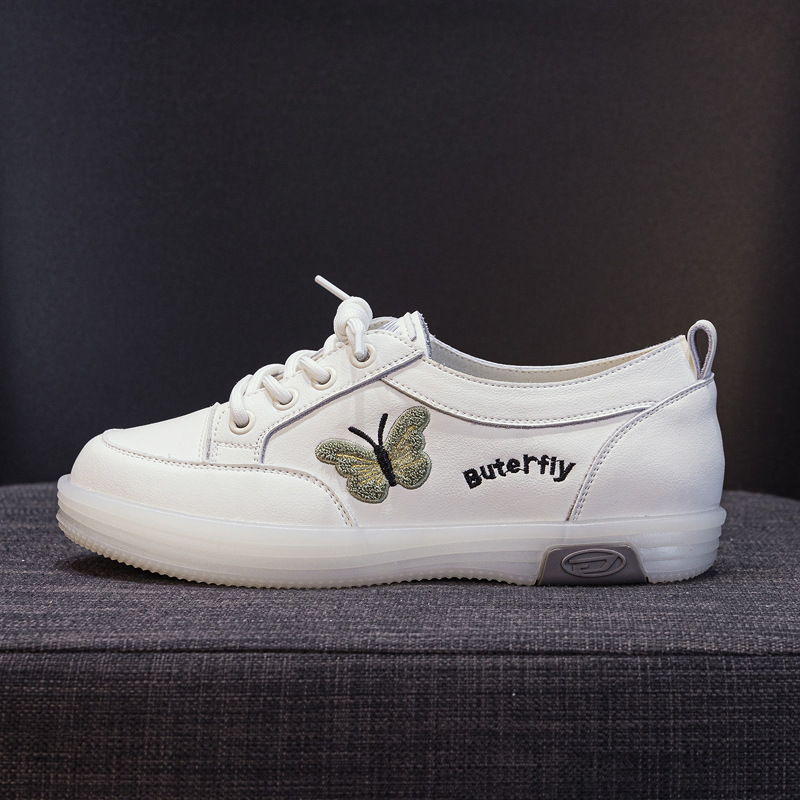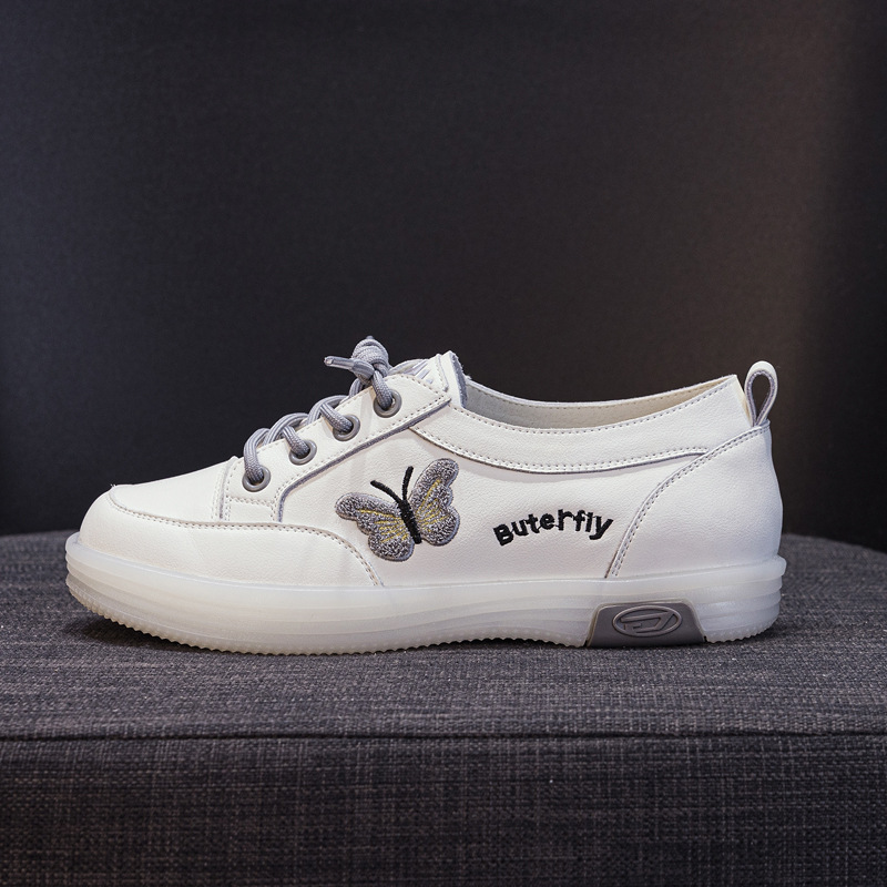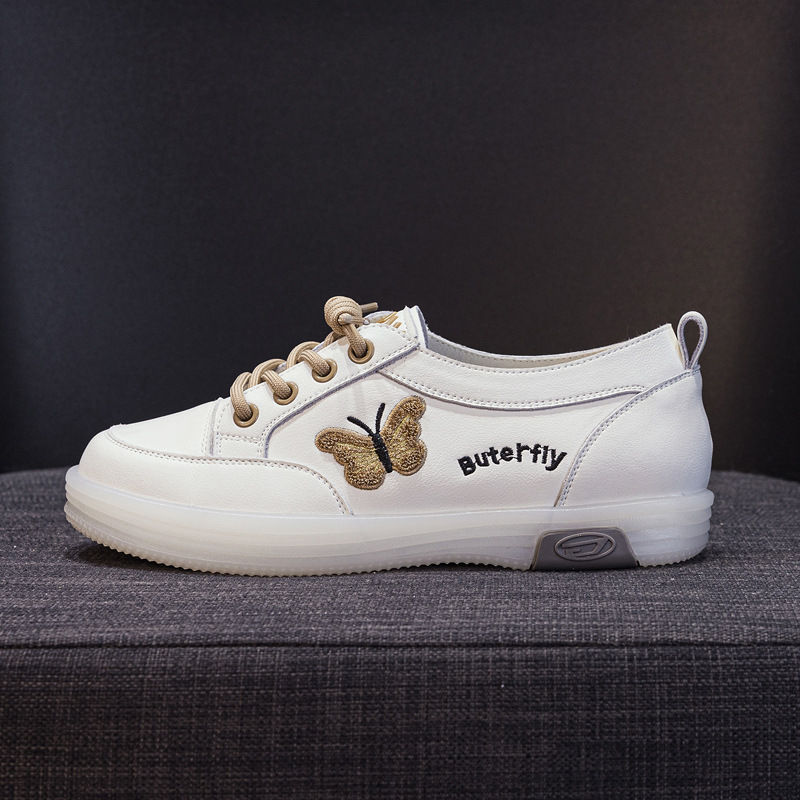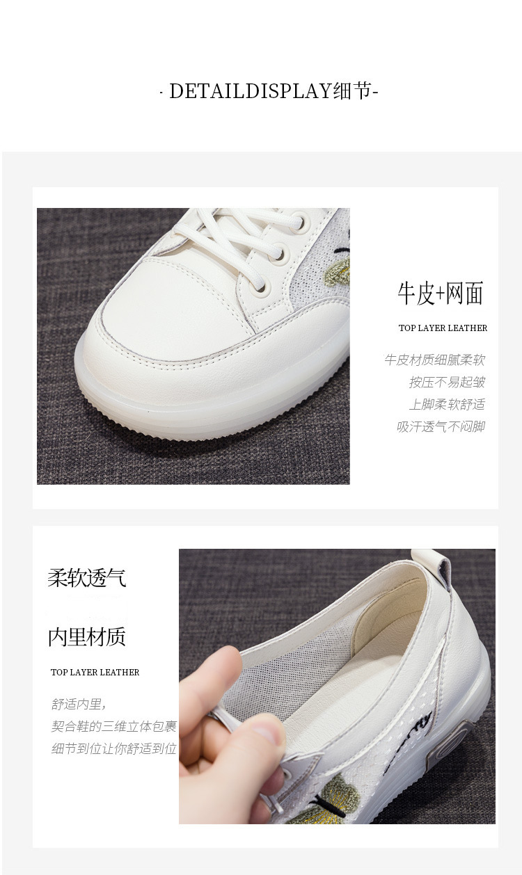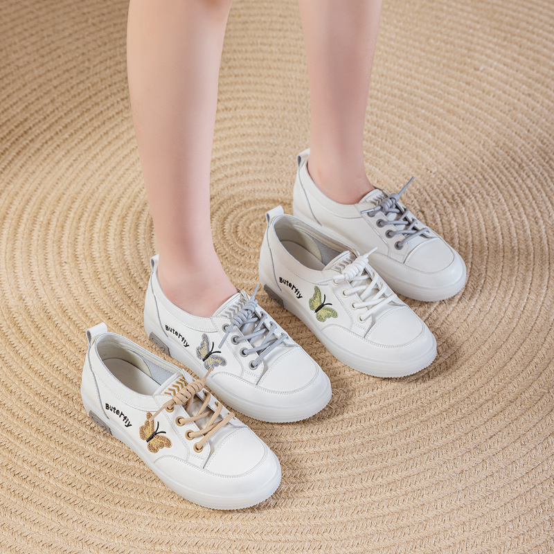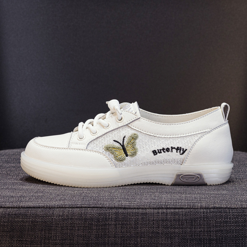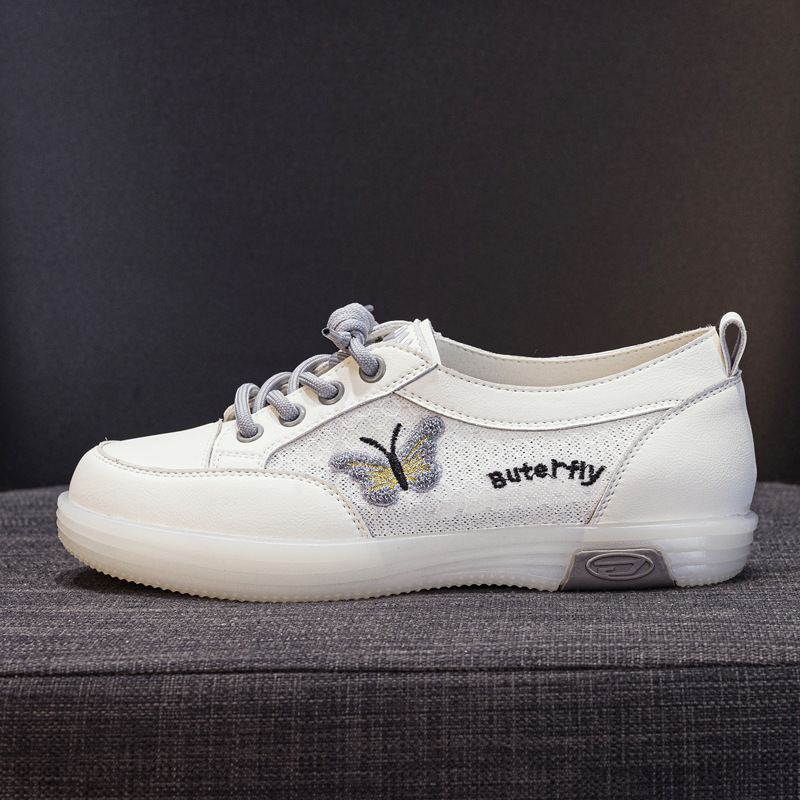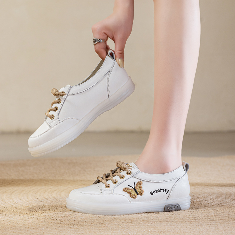 정품 가죽 플랫 화이트 신발 여성의 2025 년 봄과 여름 새로운 도착 나비 캐주얼 올 매치 소프트 솔 메쉬 신발 플러스 사이즈 여성 신발