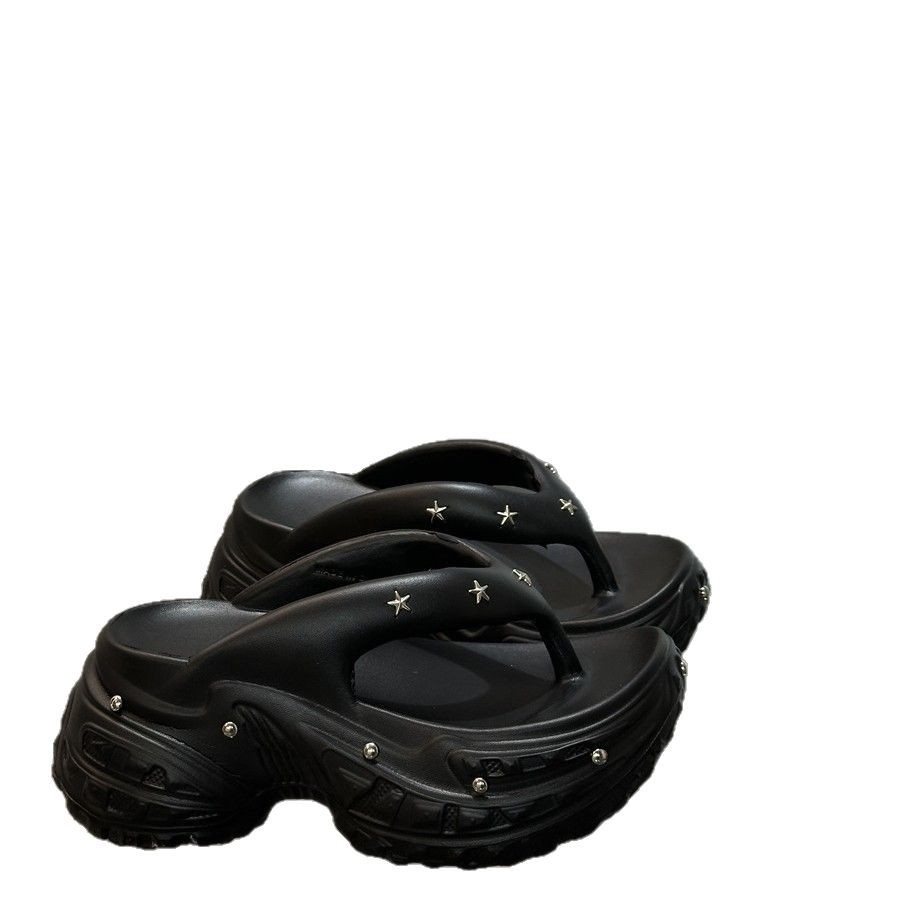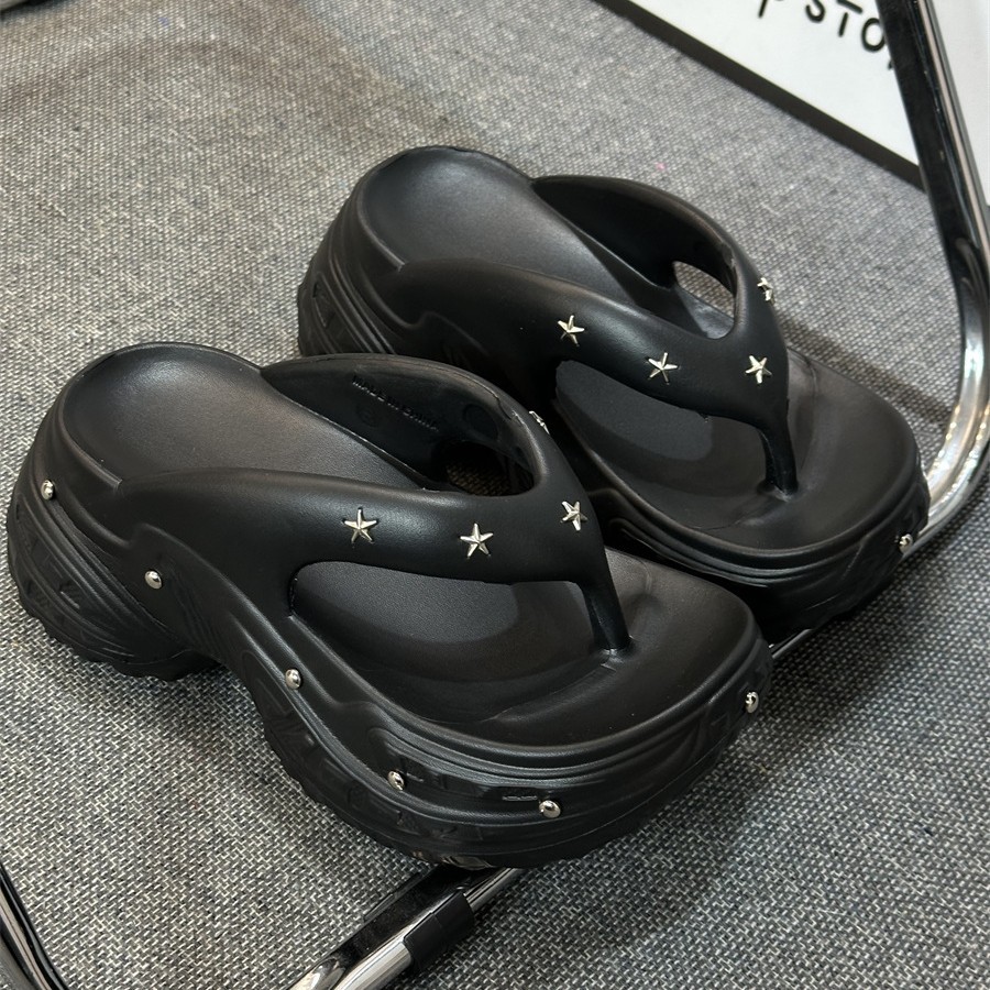 8CM 두꺼운 밑창 웨지 플립 플롭스 여성 여름 아우터 착용 두꺼운 밑창 2025 똥 느낌 새로운 여름 샌들과 슬리퍼
