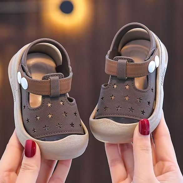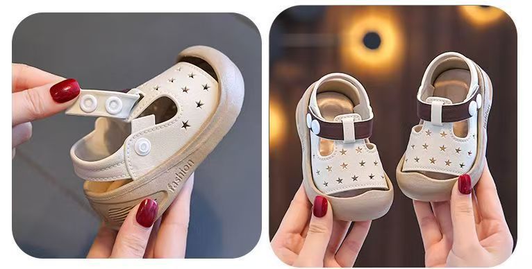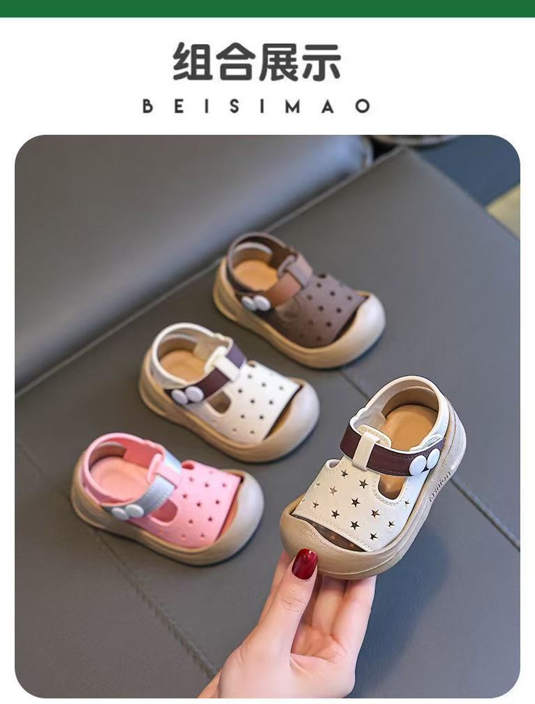 2025 새로운 아기 유아 신발 어린이 귀여운 발가락 충돌 방지 미끄럼 방지 어린이 외부 착용 벨크로 샌들 유아