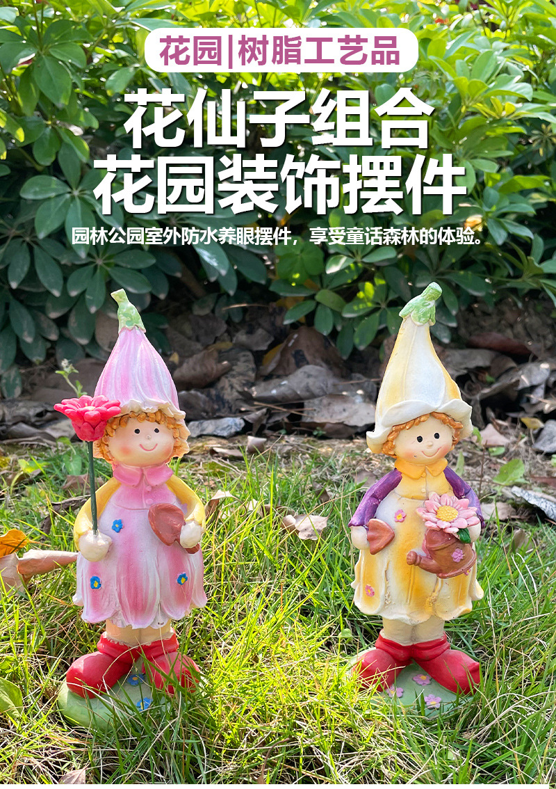 국경 간 새로운 목가적 인 만화 커플 남성과 여성 어린이 수지 공예 정원 안뜰 장식 귀여운 조각스토어 가기