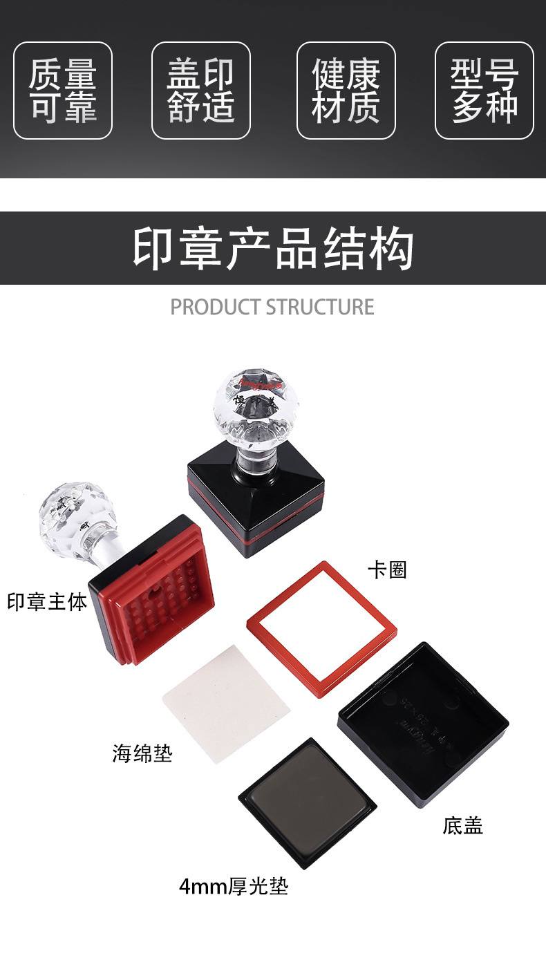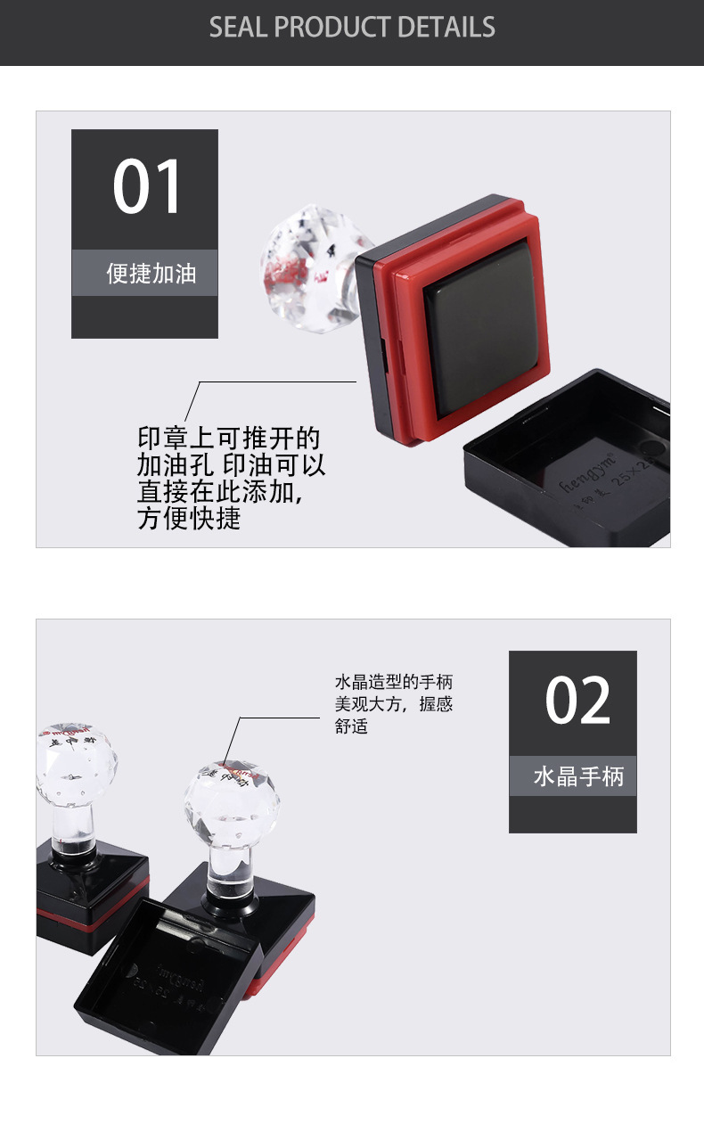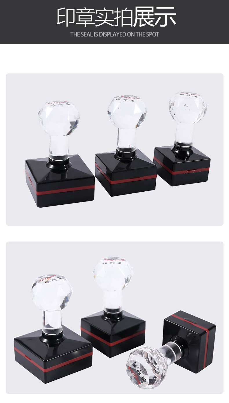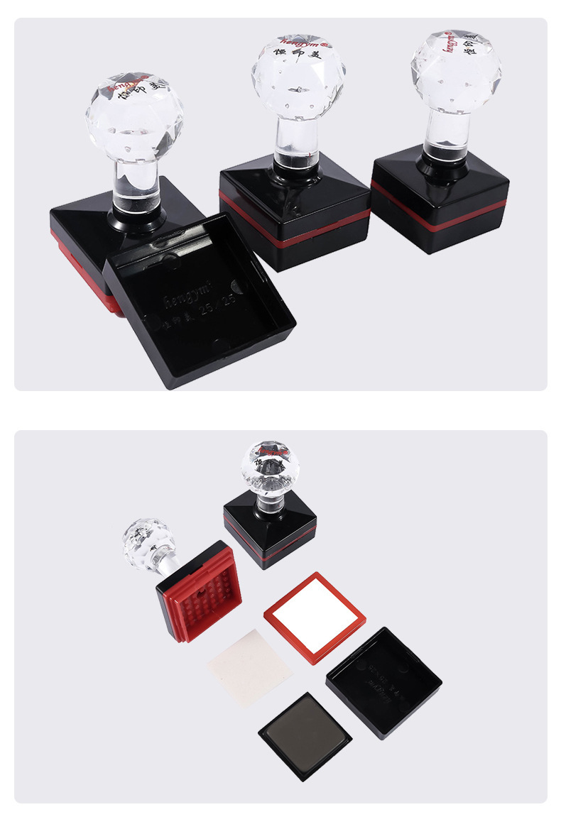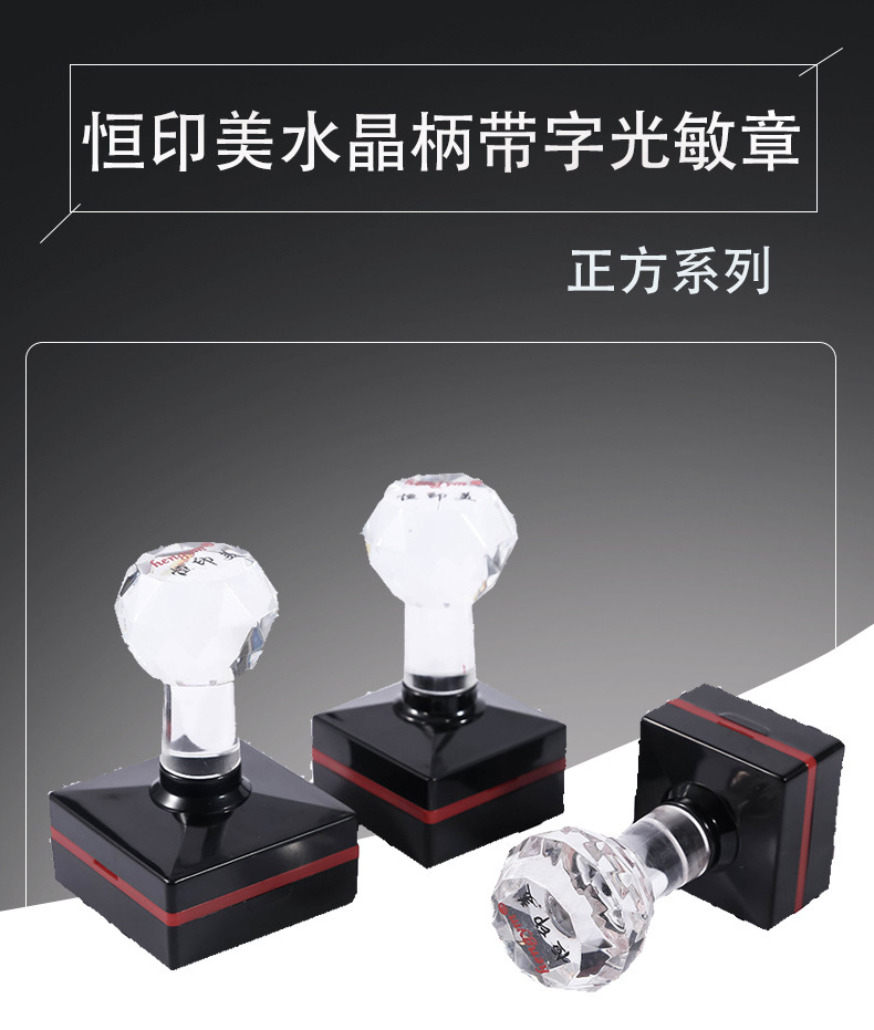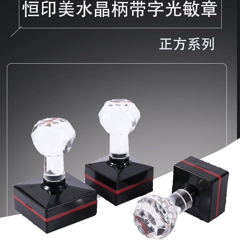 Hengyimei hengym 사각형 감광성 인감 무료 가장자리 감광성 인감 크리스탈 핸들 인감 재료 도매스토어 가기