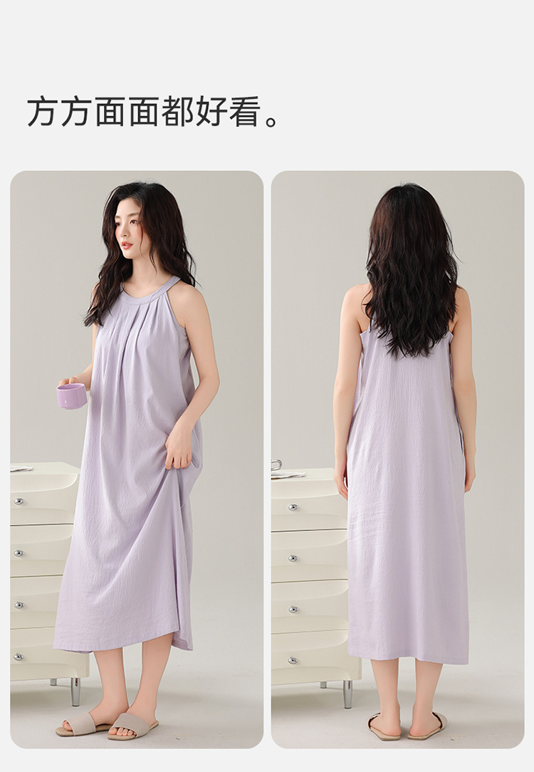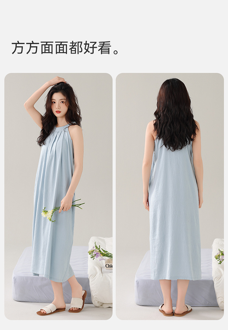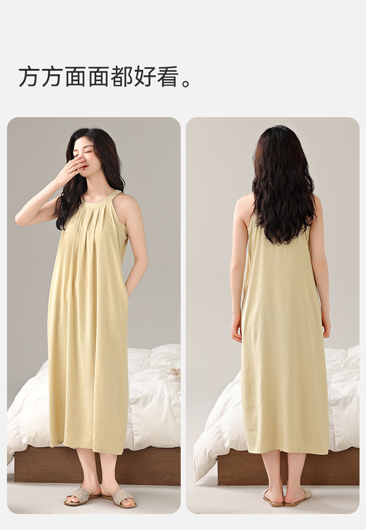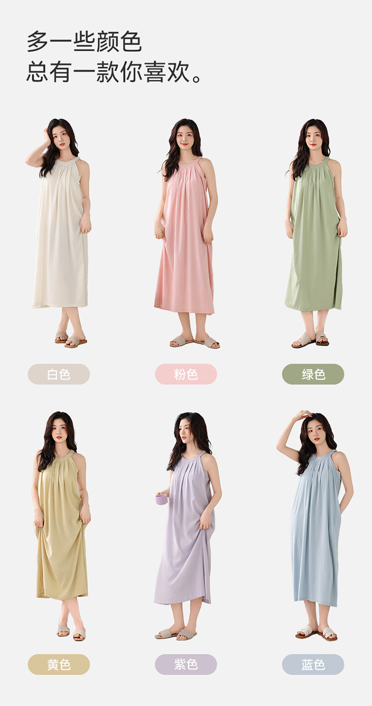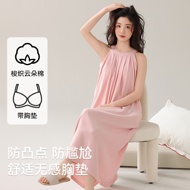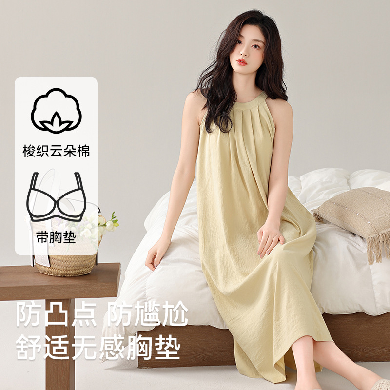 여성용 클라우드 코튼 나이트가운, 가슴 패드가 있는 여름 홀터넥 롱 스커트, 루즈하고 섹시한 민소매 풀오버, 단색 홈웨어, 외부 착용 가능스토어 가기