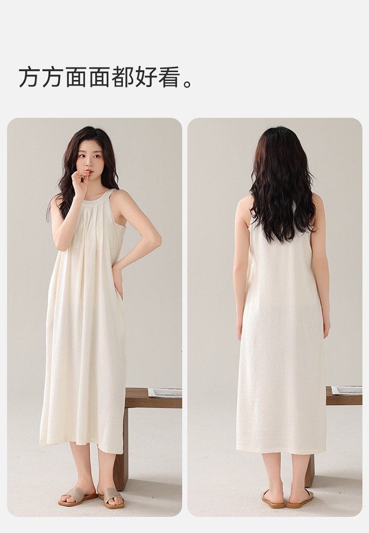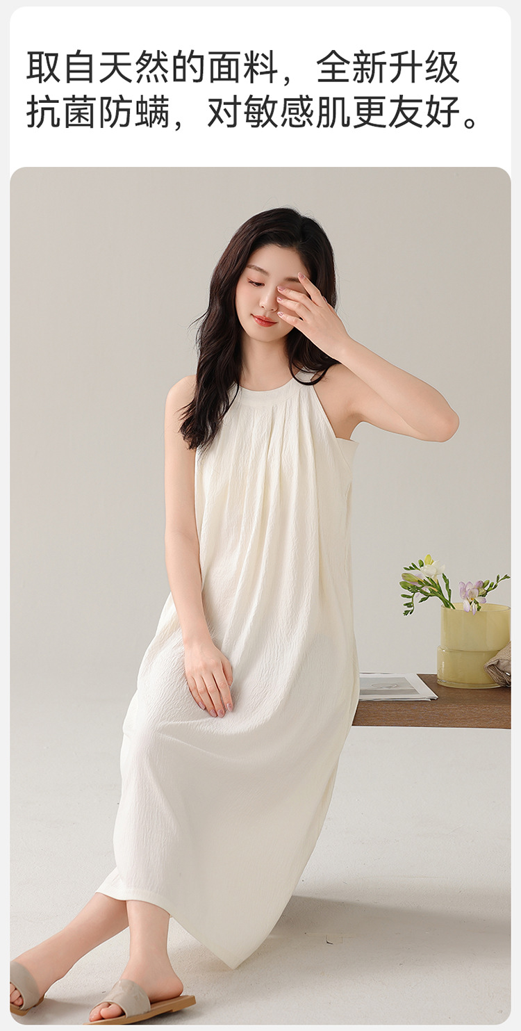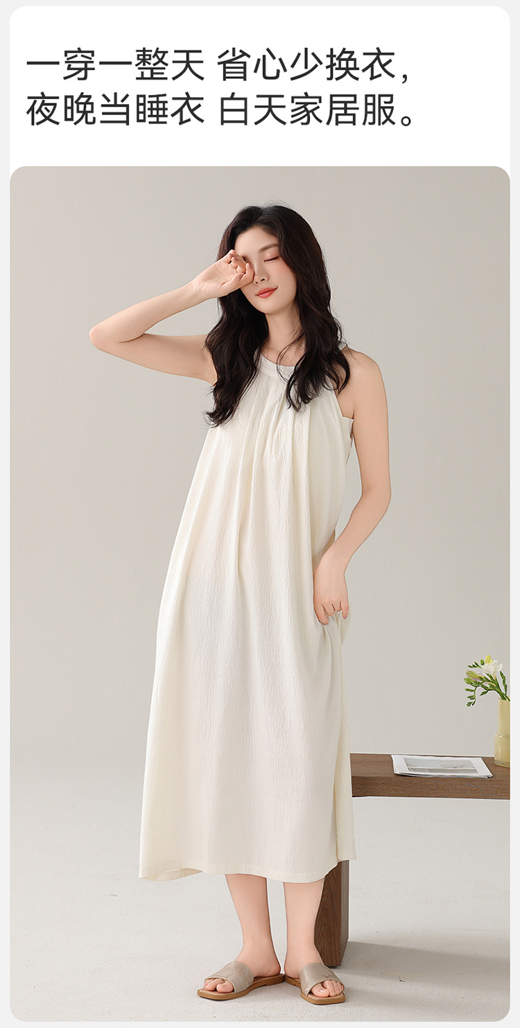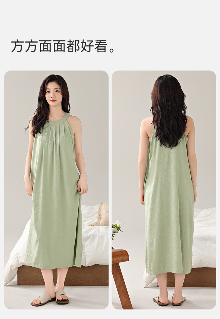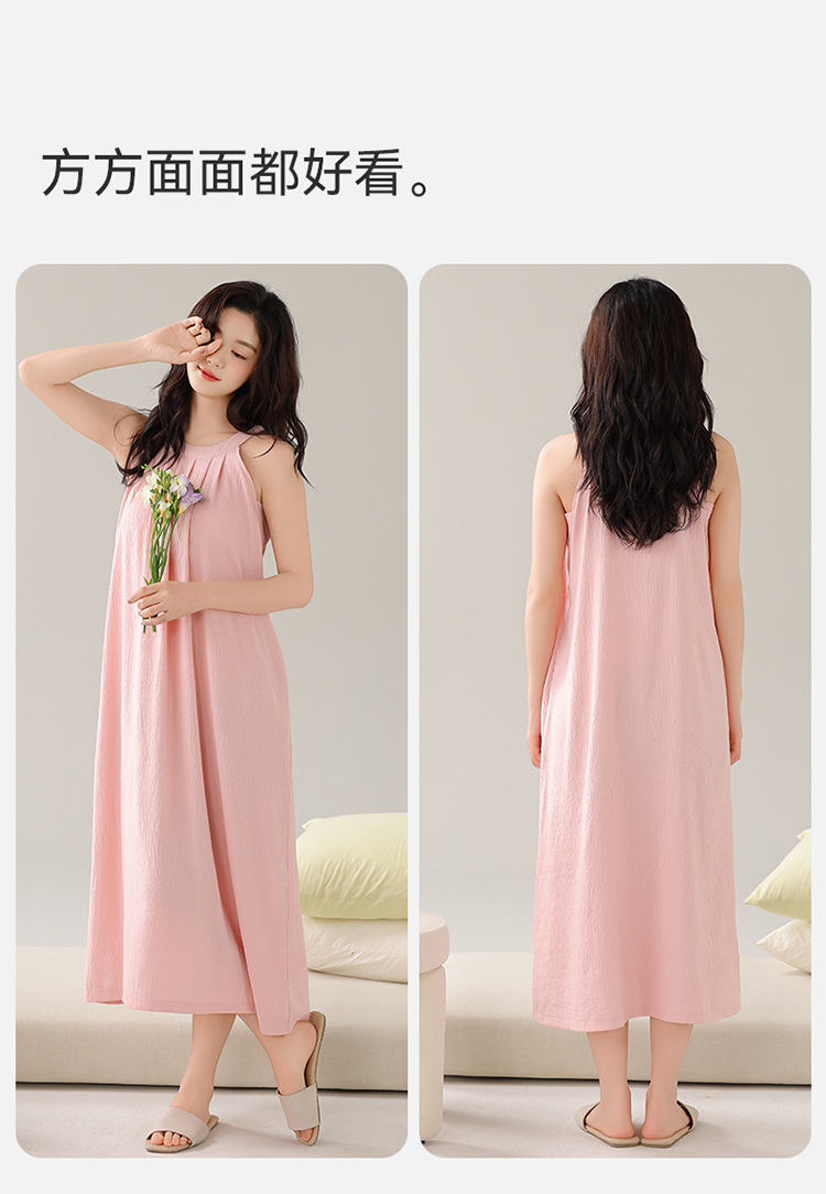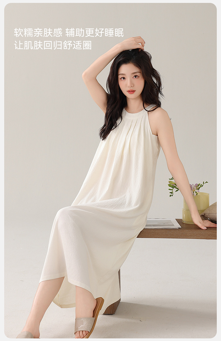 여성용 클라우드 코튼 나이트가운, 가슴 패드가 있는 여름 홀터넥 롱 스커트, 루즈하고 섹시한 민소매 풀오버, 단색 홈웨어, 외부 착용 가능스토어 가기
