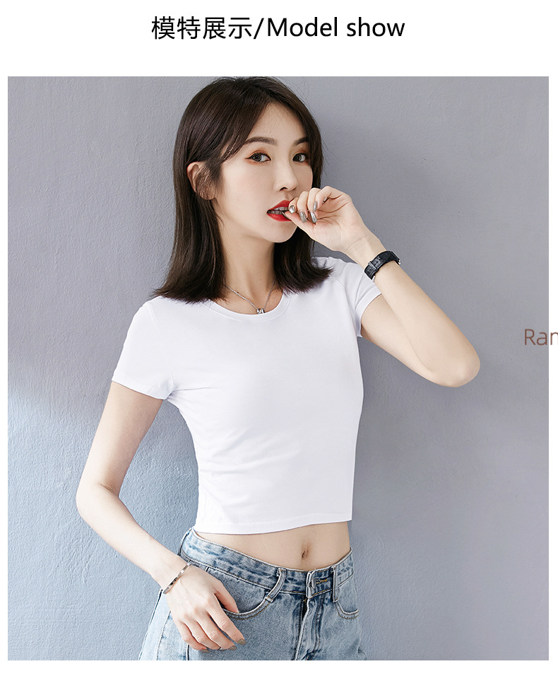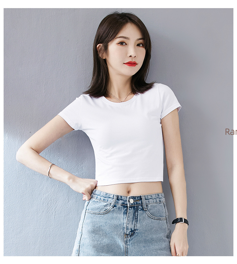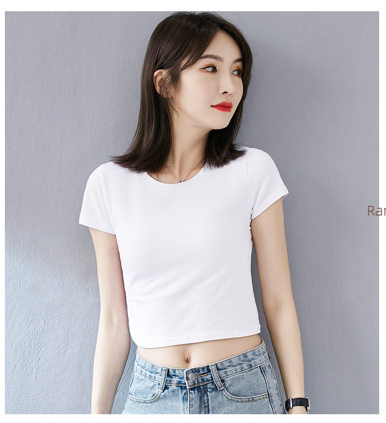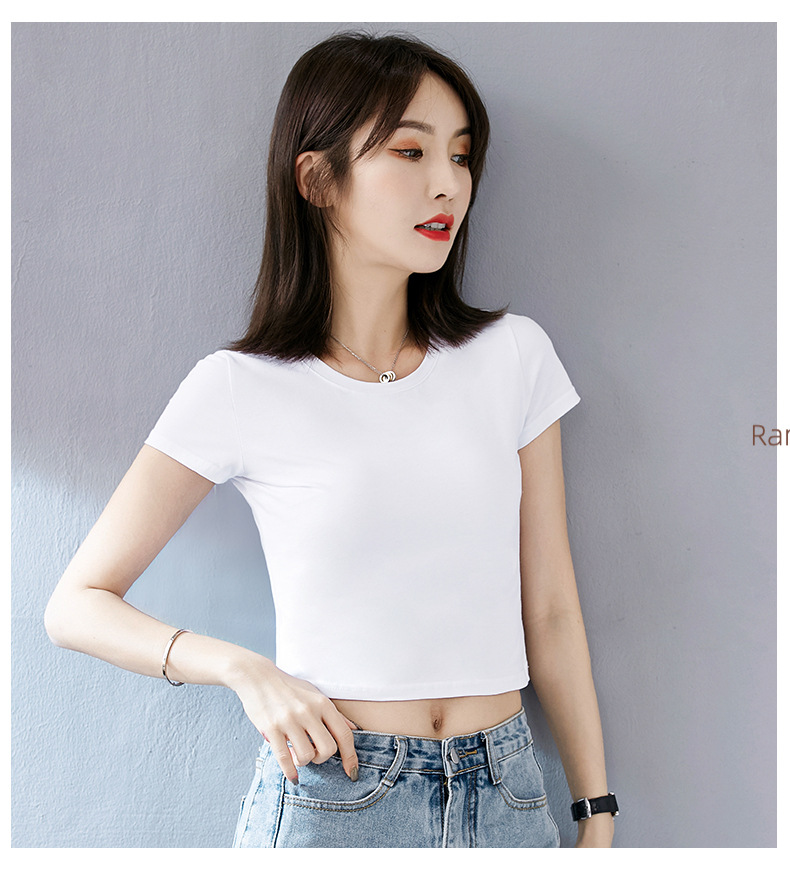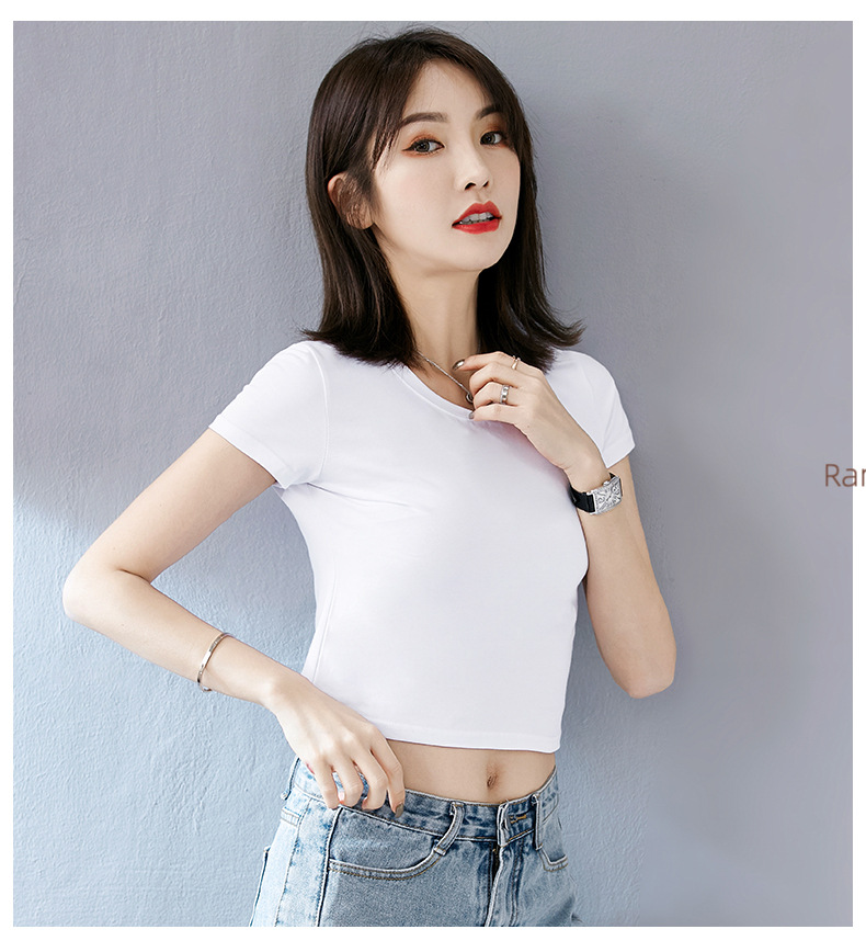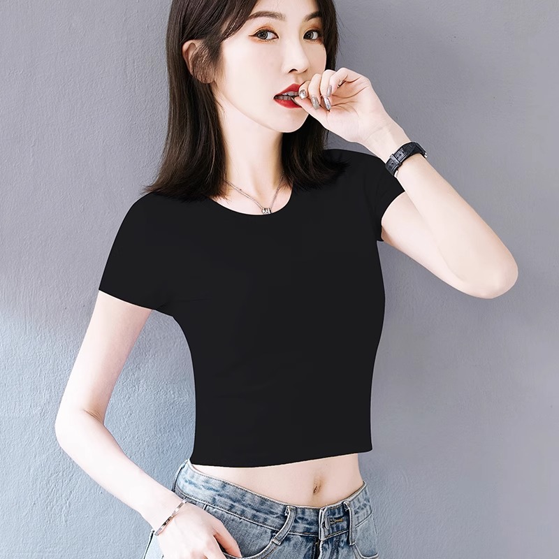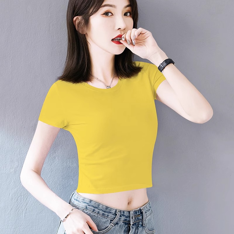 여성용 순면 타이트 배꼽 노출 반팔 티셔츠, 핫 걸 스타일 하이 웨이스트 짧은 한국식 솔리드 컬러 독특하고 아름다운 여름 탑스토어 가기