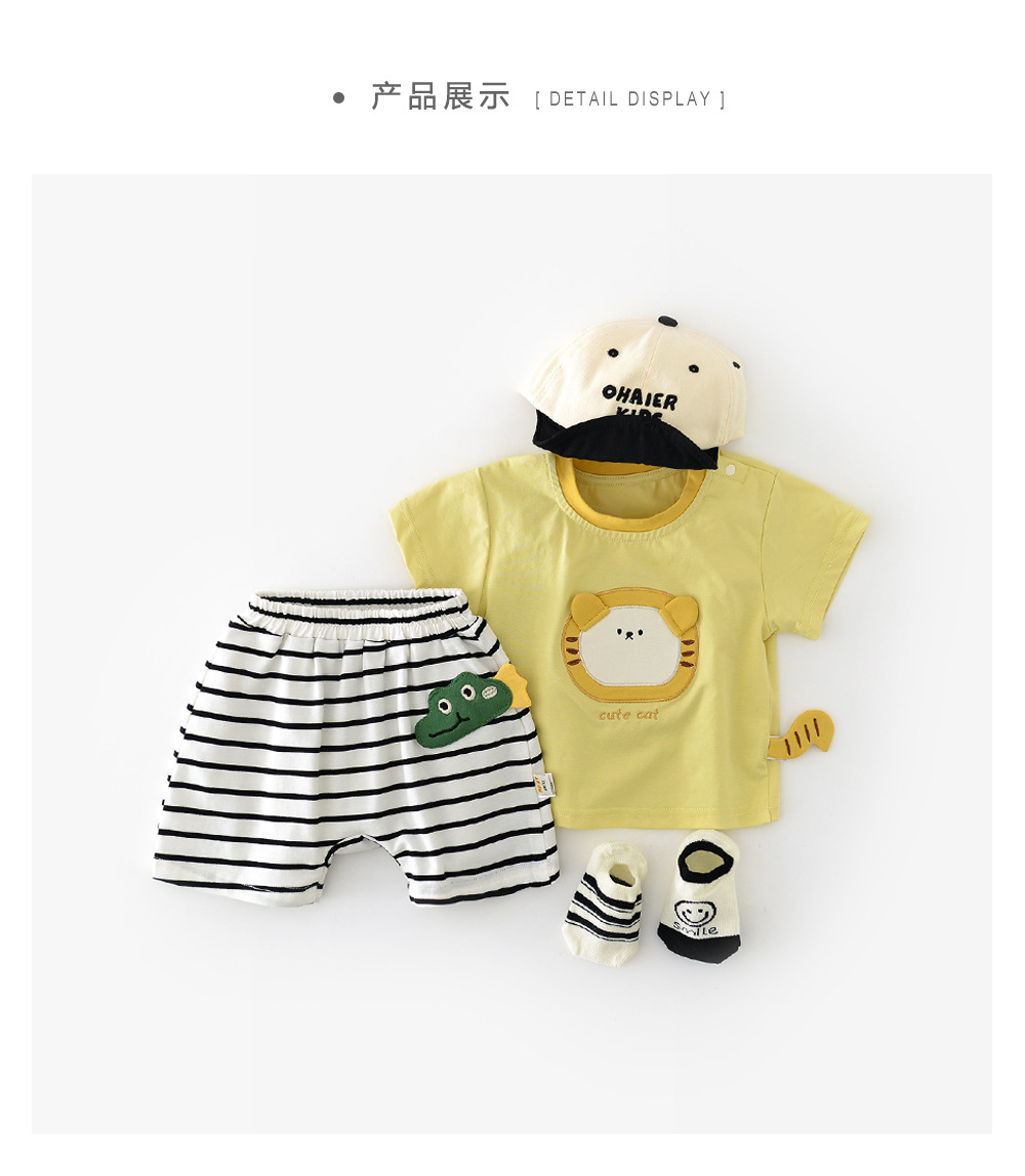 阿宝囡囡婴幼童夏季套装 韩版男女宝宝绿条纹恐龙儿童短袖两件套