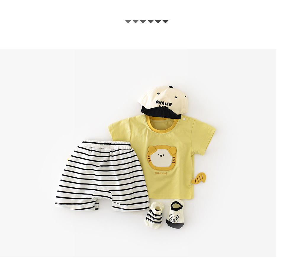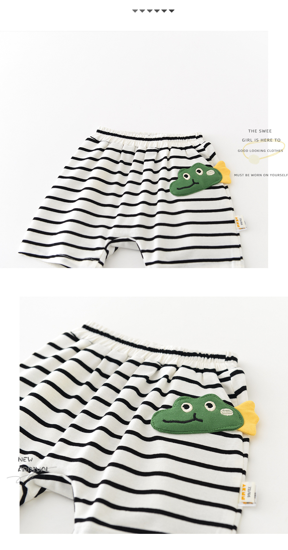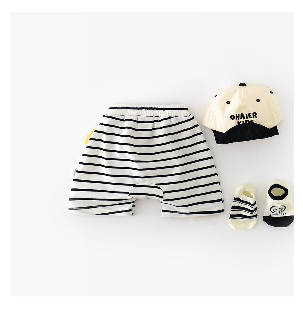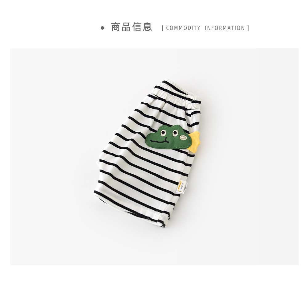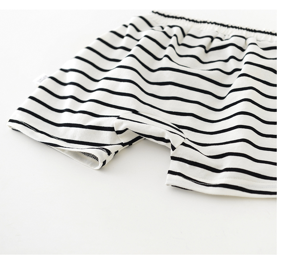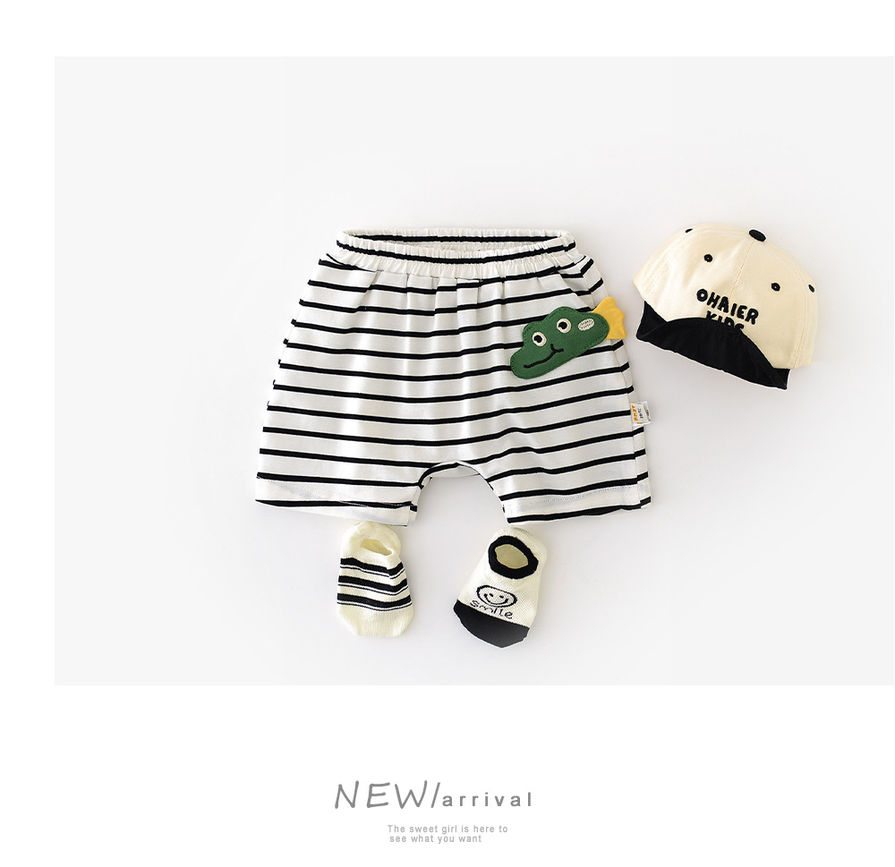 2025 년 여름 새 한국식 어린이 줄무늬 악어 라벨 반바지 아기와 유아의 흑백 줄무늬 바지 52919스토어 가기