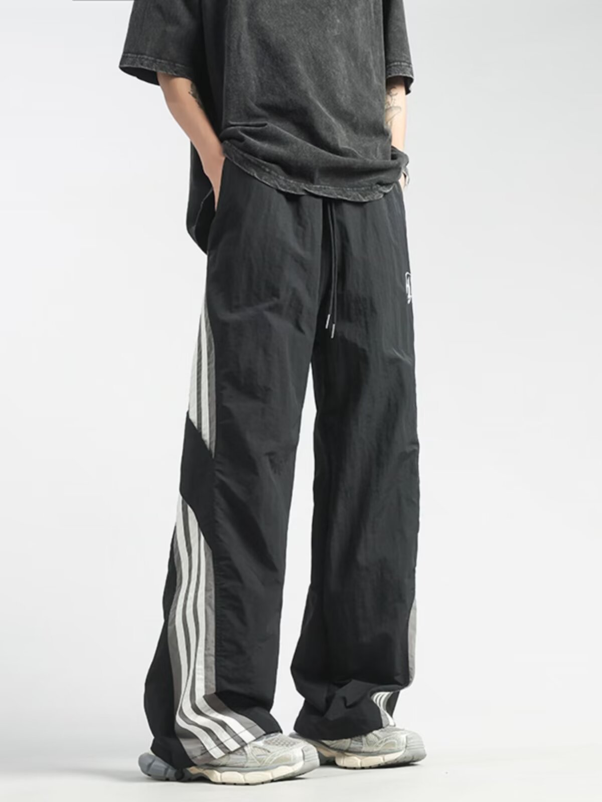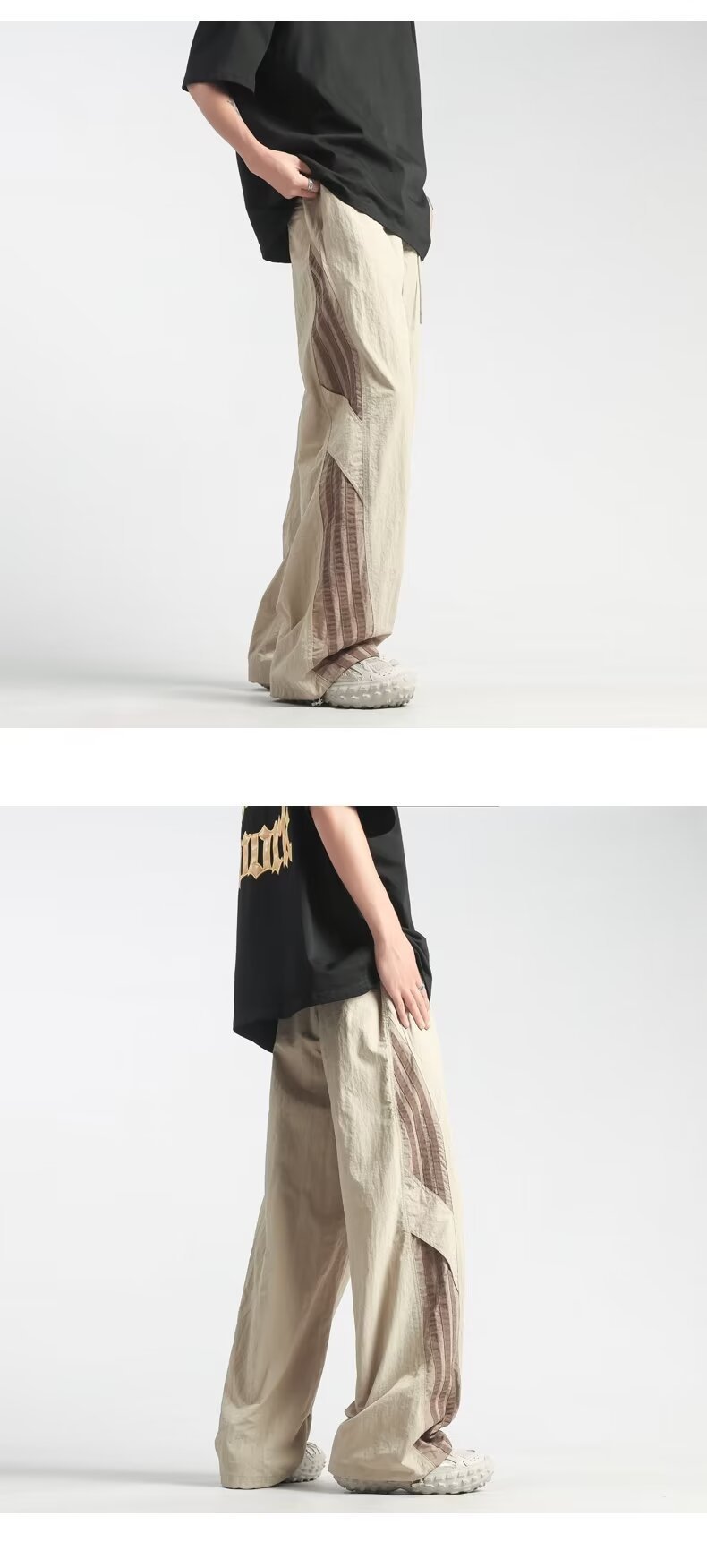 남성과 여성을 위한 미국 여름 줄무늬 캐주얼 낙하산 바지, 루즈한 와이드 레그 스트레이트 스트리트 댄스 스포츠 충전 바지 트렌드스토어 가기