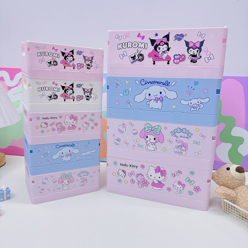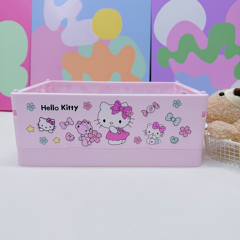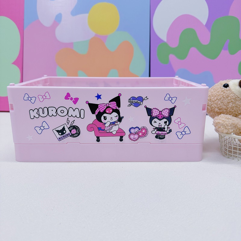 卡通三丽鸥桌面折叠收纳盒书桌塑料迷你储物盒文具收纳盒,产品尺寸:25X16.5X9.5cm.
