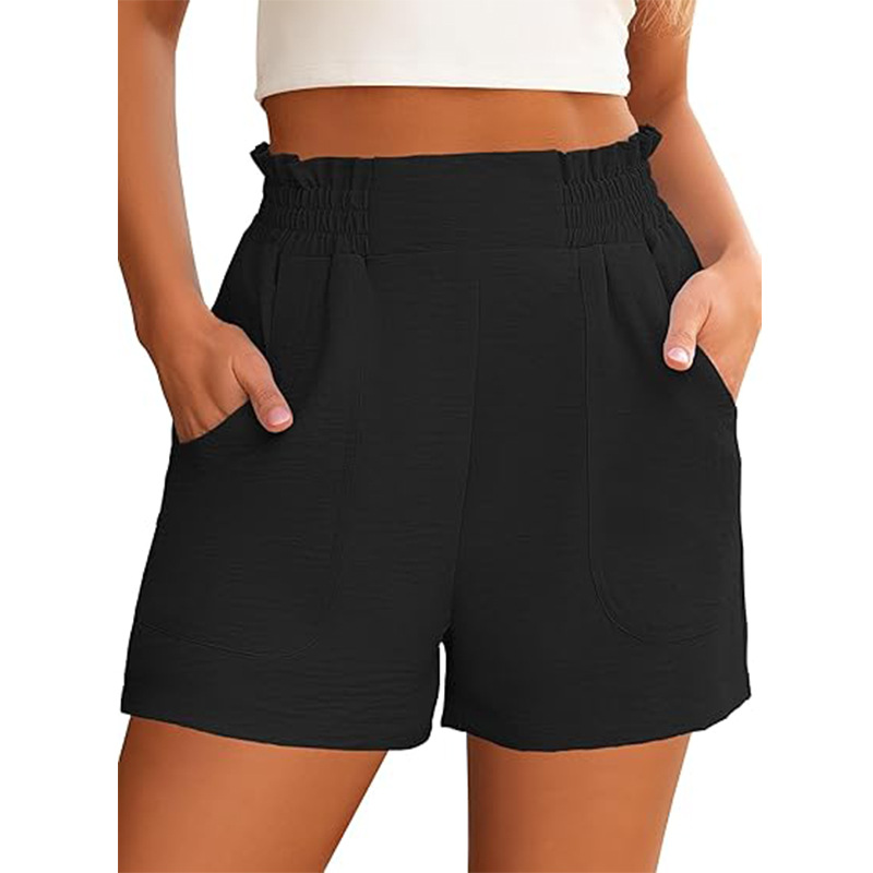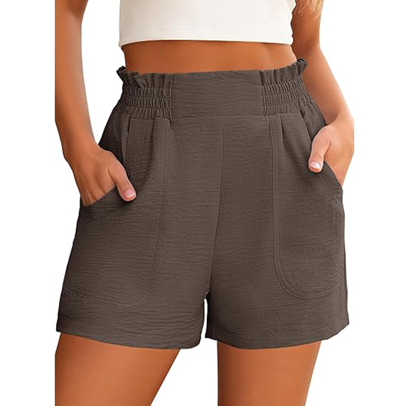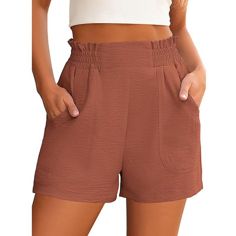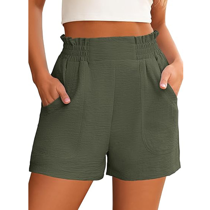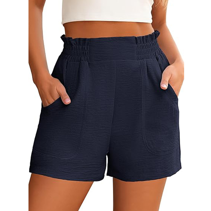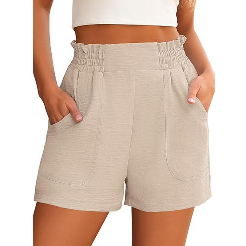 국경 간 Amazon 유럽과 미국 캐주얼 솔리드 컬러 하이 웨이스트 여름 신작 여성 반바지 탄성 편안한 루즈 스트레이트 여성