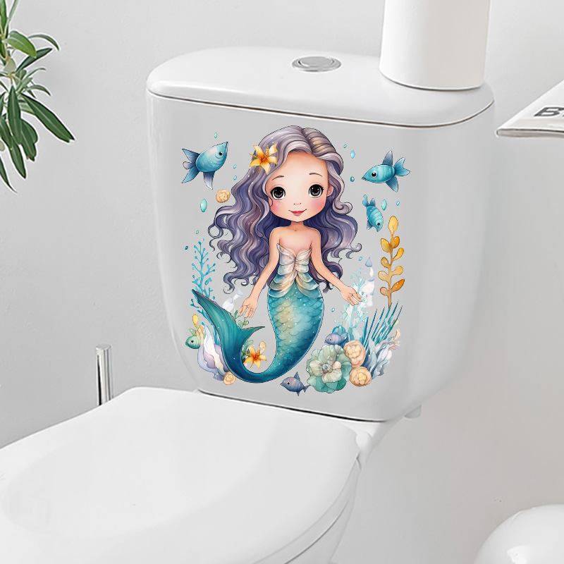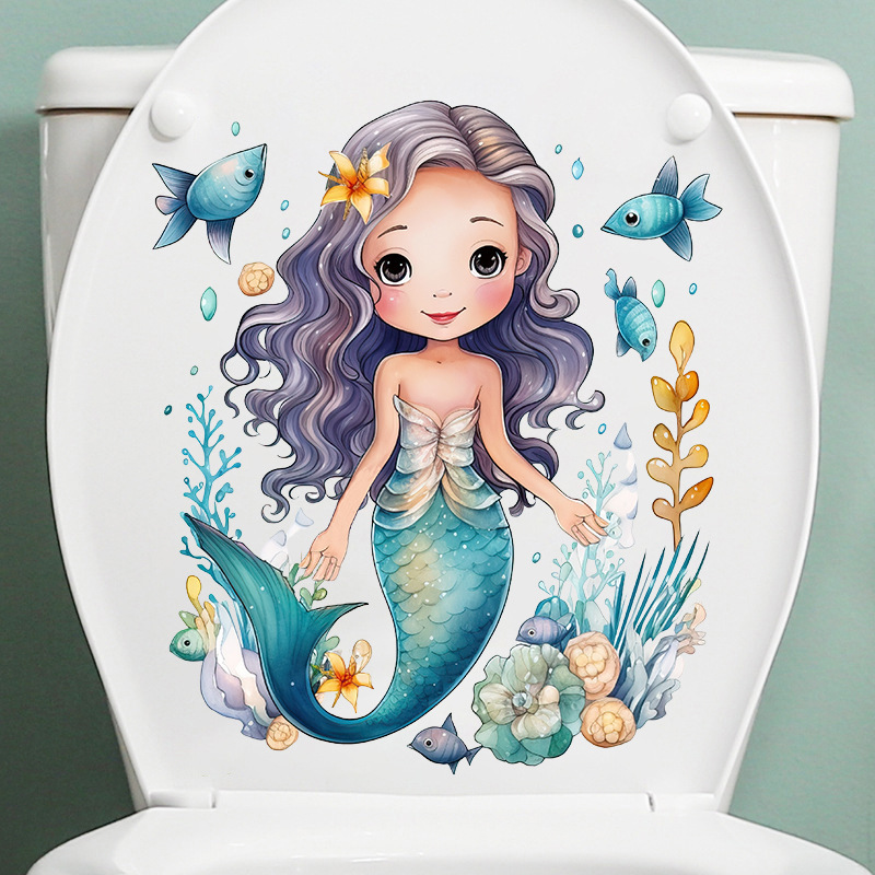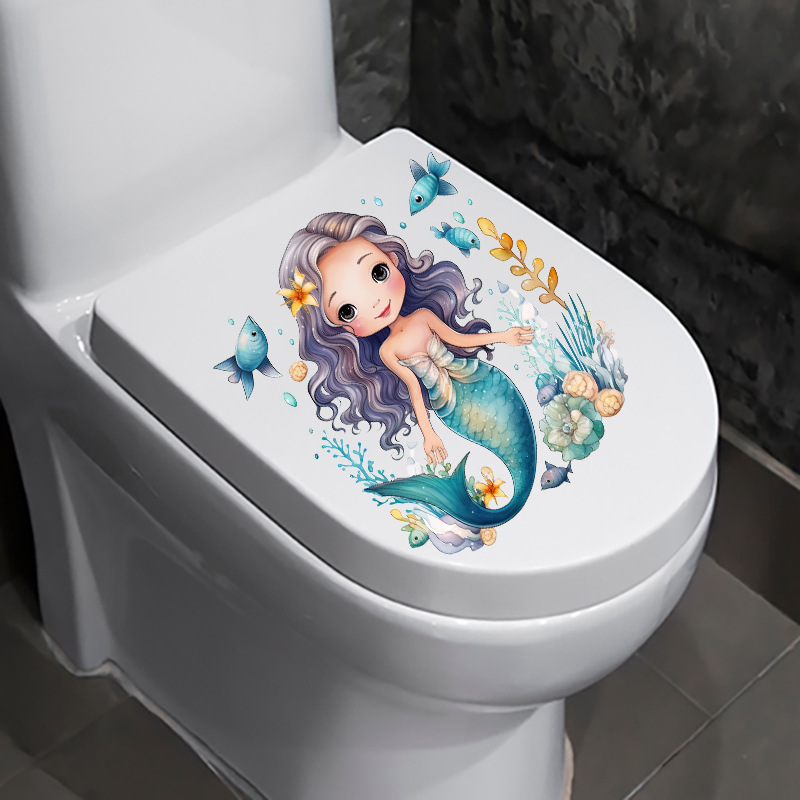 만화 인어 쉘 욕실 화장실 방수 변기 변기 스티커 자체 접착 스티커 홈 인테리어 스티커스토어 가기