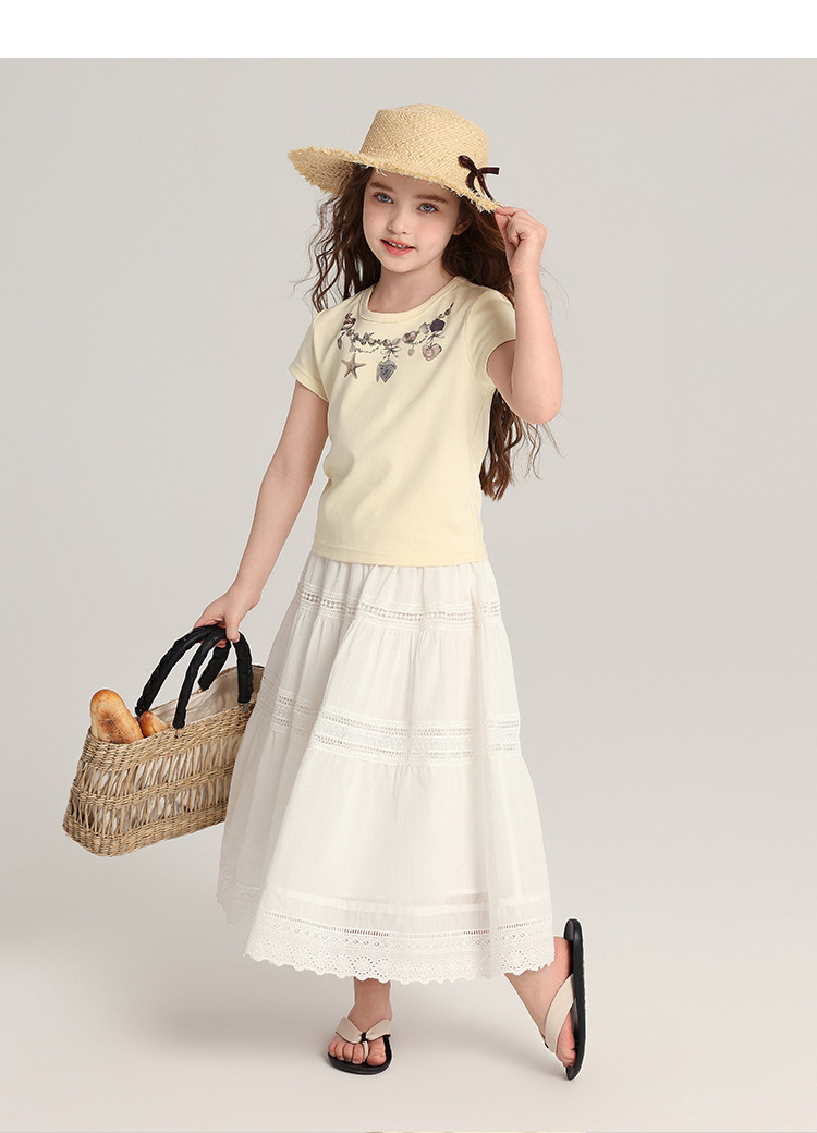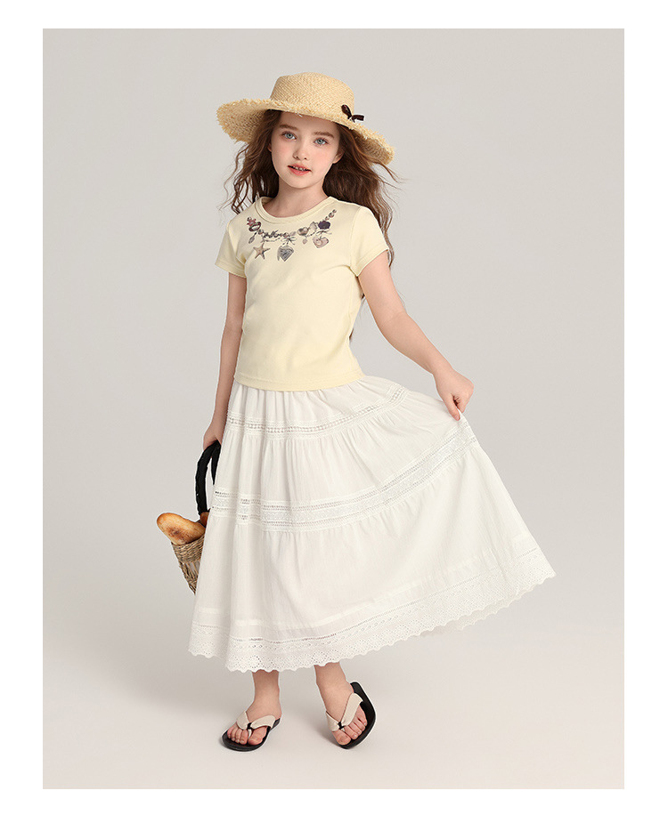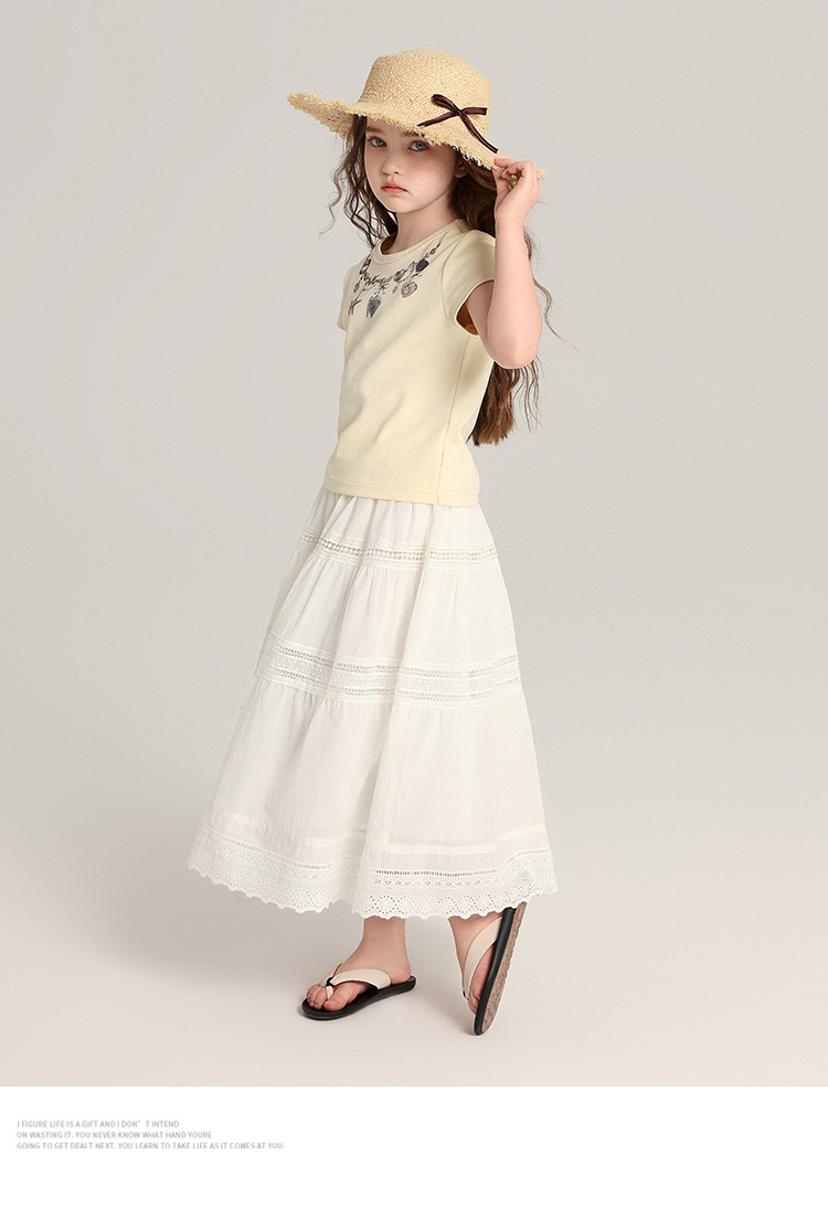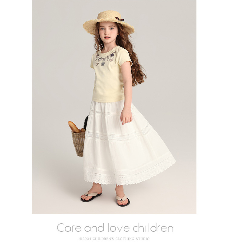 푸딩 하루 아동복 소녀의 예술적 스타일 스커트 2025 여름 새로운 어린이 달콤한 서양식 화이트 스커트