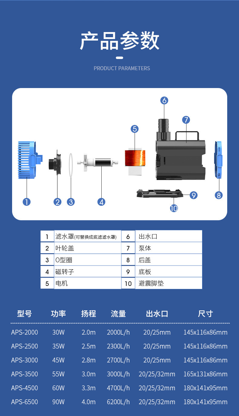 물고기 연못 잠수정 작은 바닥 흡입 펌프 수족관 여과 펌프 분수 순환 펌프 APS스토어 가기
