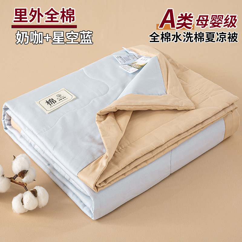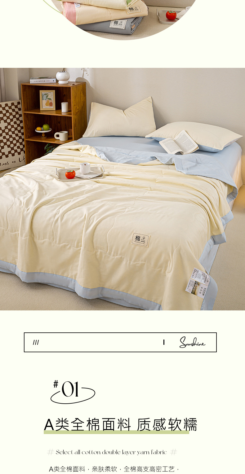 순면 신장면 여름 이불 얇은 에어컨 이불 순면 여름 시원한 이불 4피스 세트 세탁기로 세탁 가능한 이불