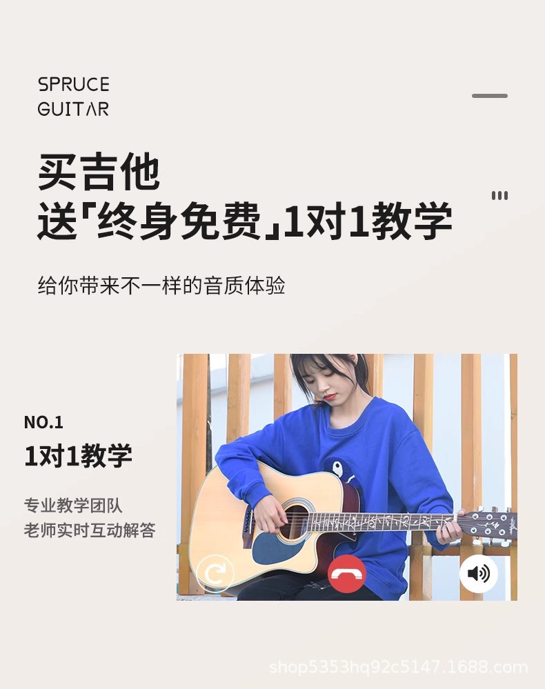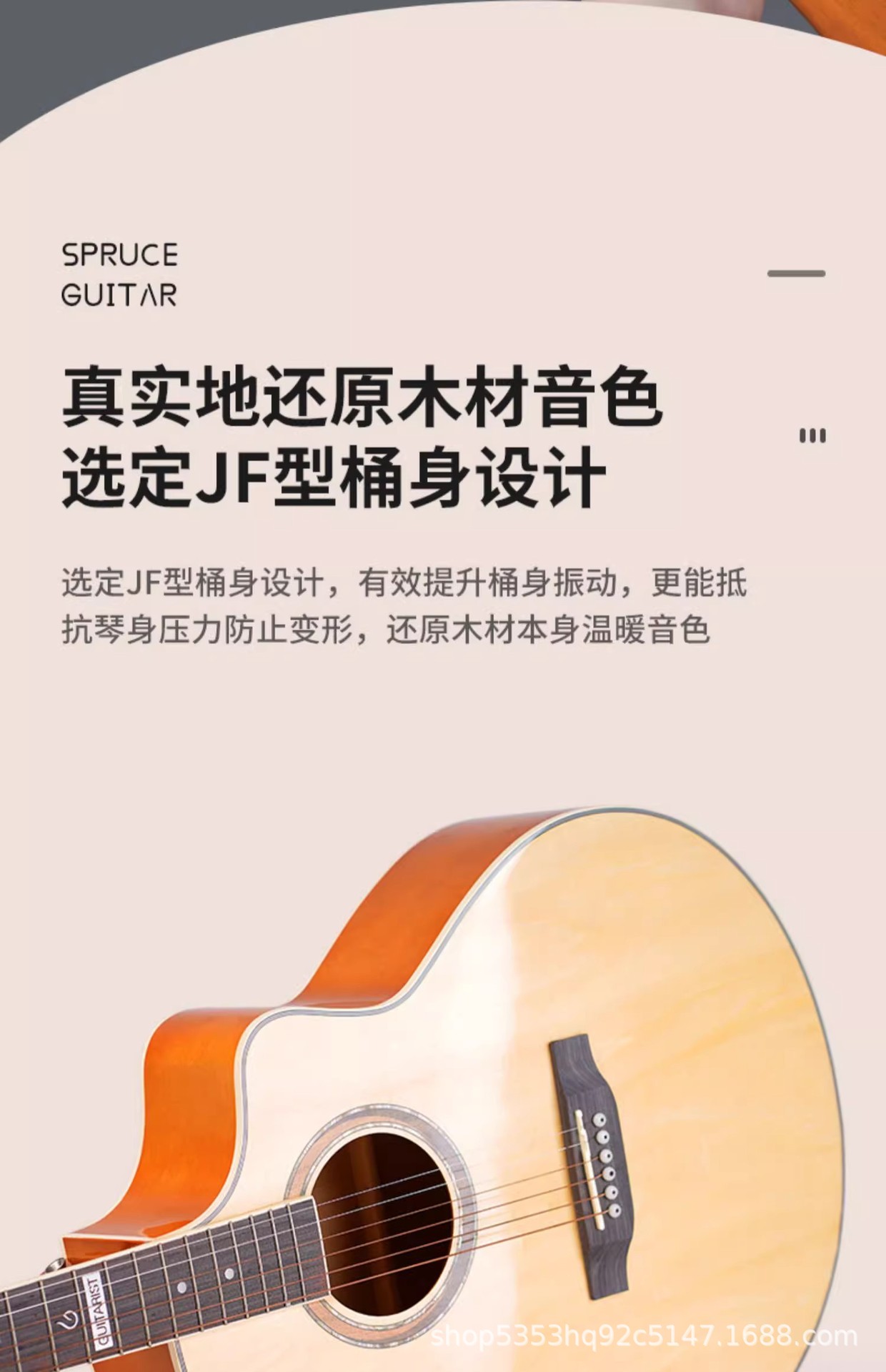 단일 기타 41inch 클래스 A 스프루스 베니어 연마 JF 버킷 포크 기타 기타 제조 업체 기타 도매스토어 가기